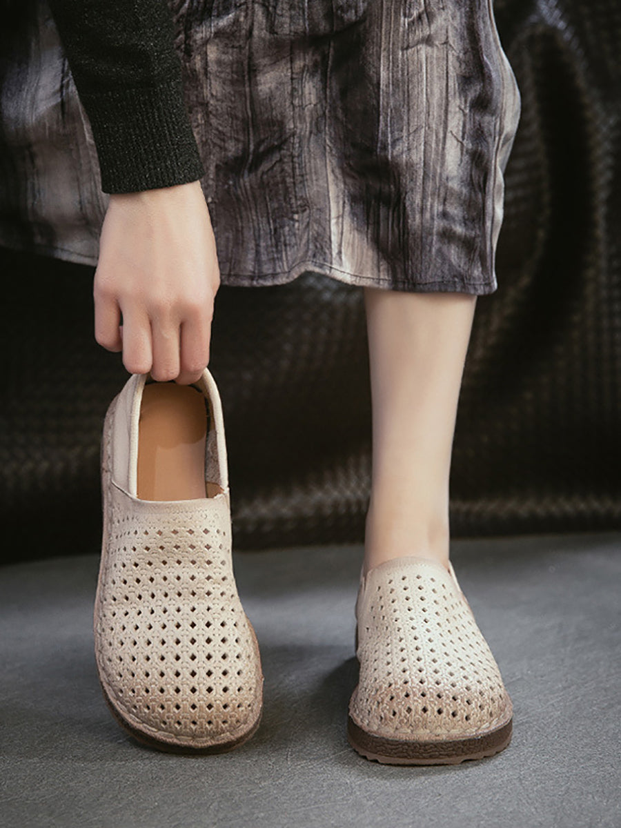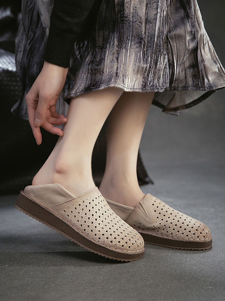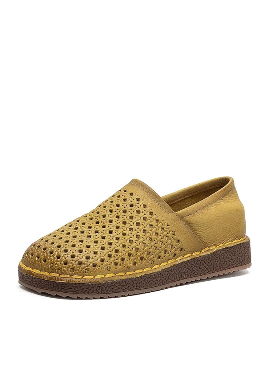 Zapatos planos calados de cuero suave de verano para mujer