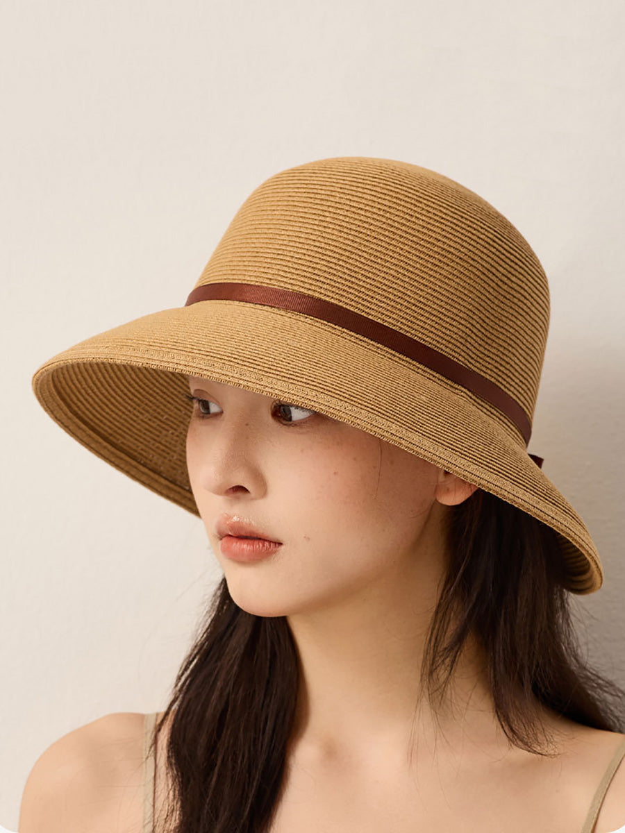 Sombrero de paja de punto para mujer, ideal para el verano y con protección solar.