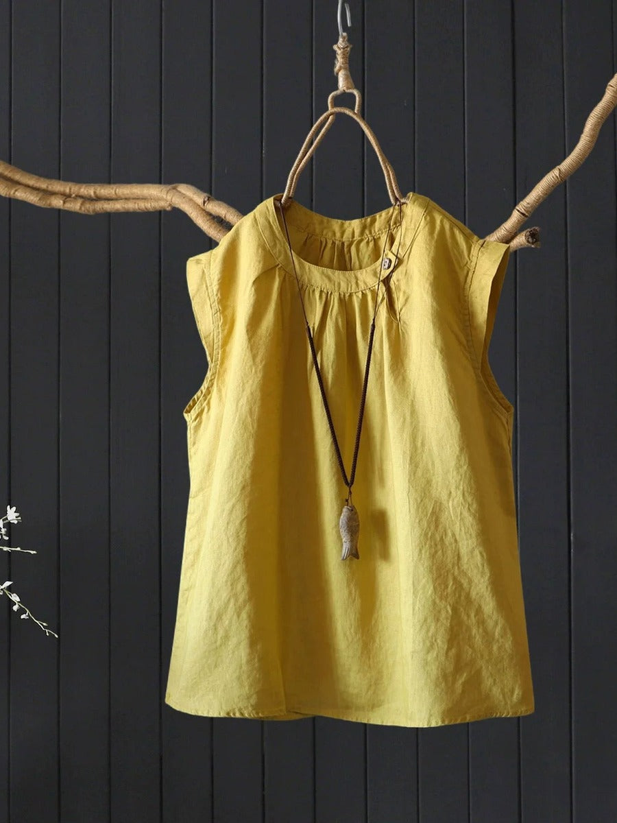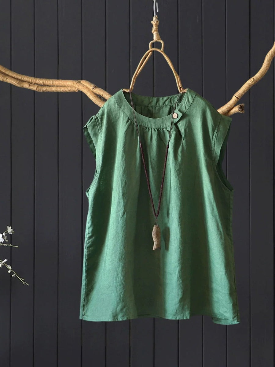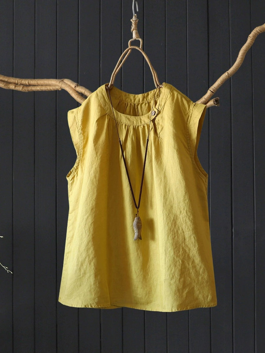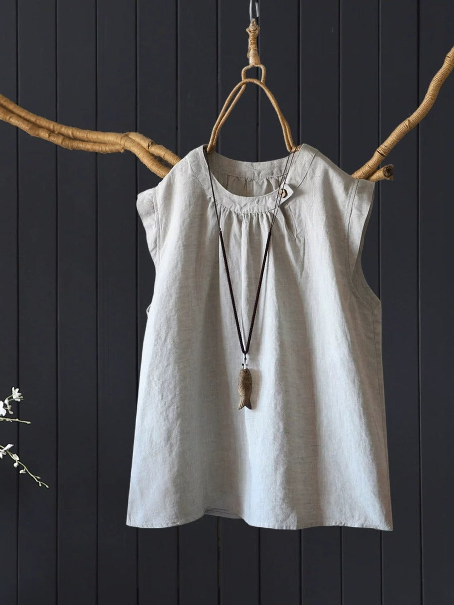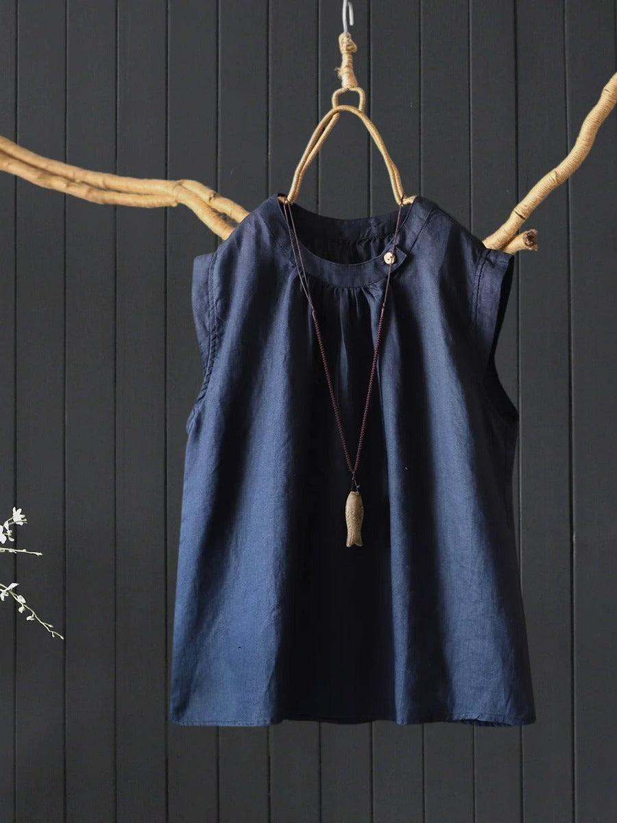 Blusa sin mangas de lino 100% estilo vintage para mujer, ideal para el verano.