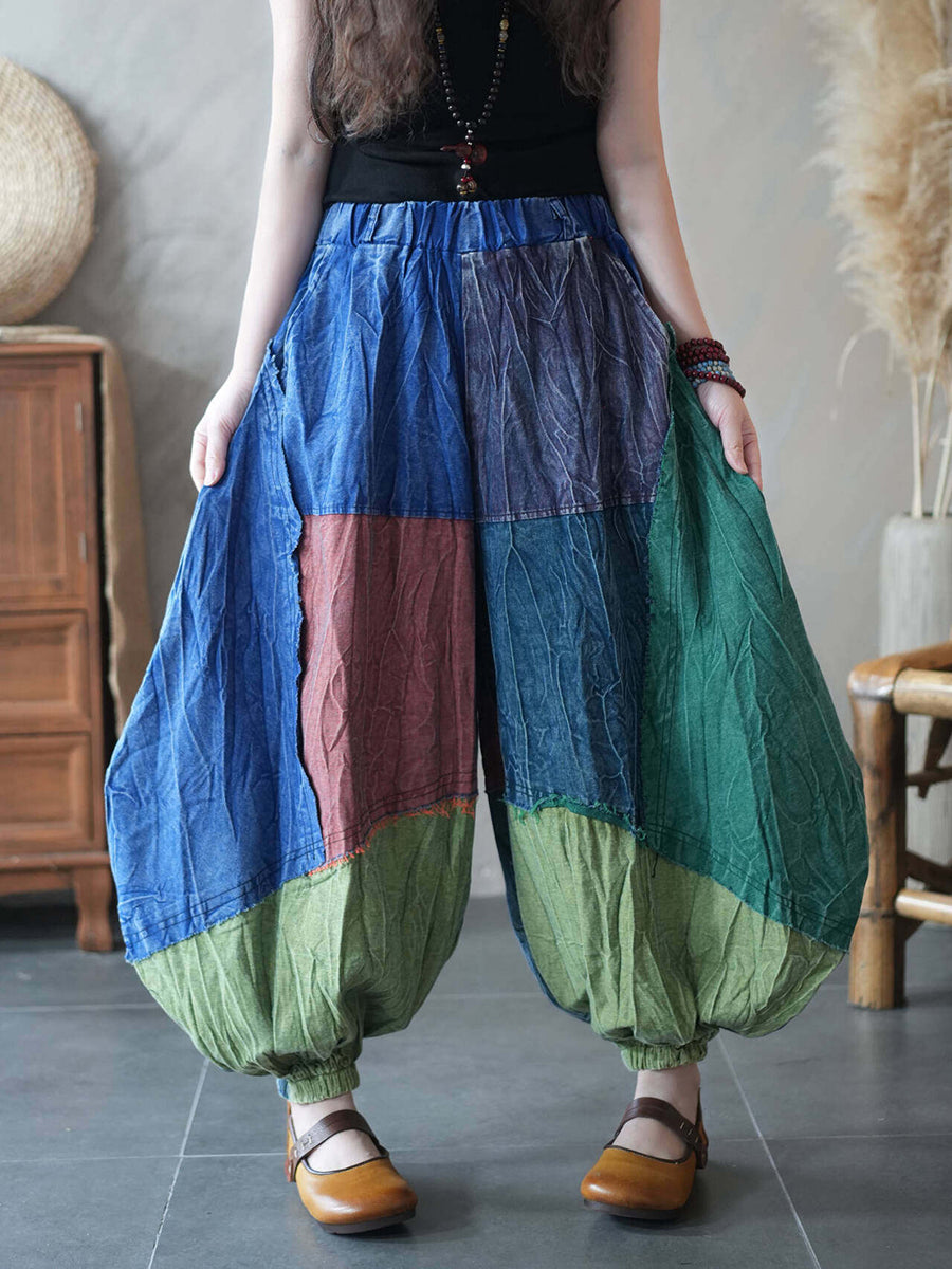 Bombachos de verano de mezclilla vintage con retazos para mujer