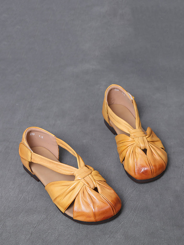 Sandalias vintage de verano con tiras de cuero genuino para mujer