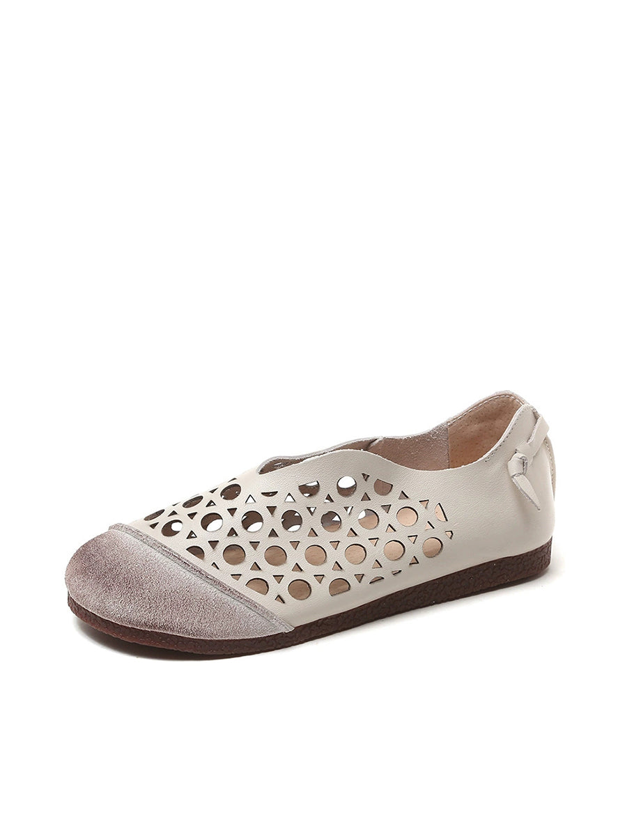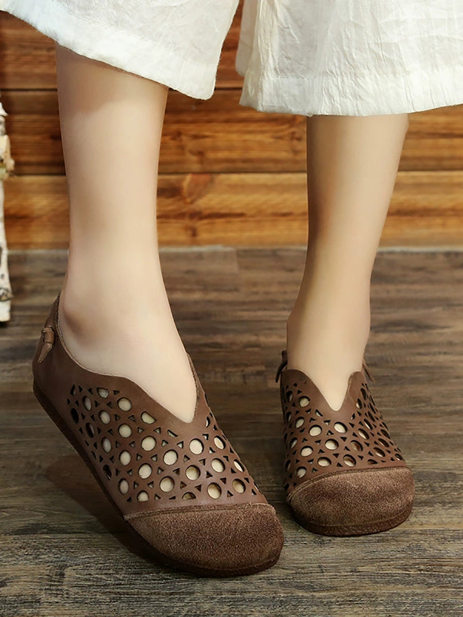 Sandalias de cuero vintage caladas para mujer, verano, verano