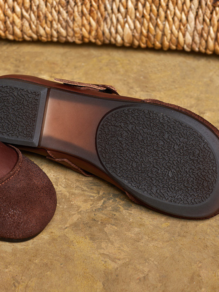 Zapatos de tacón bajo con empalme de cuero vintage de verano para mujer