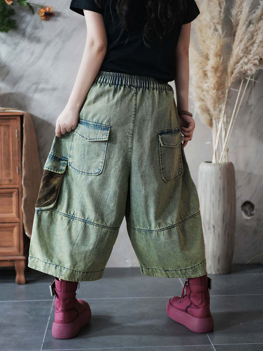 Pantalones vaqueros de pierna ancha con diseño de patchwork vintage de verano para mujer