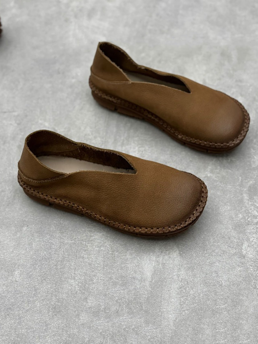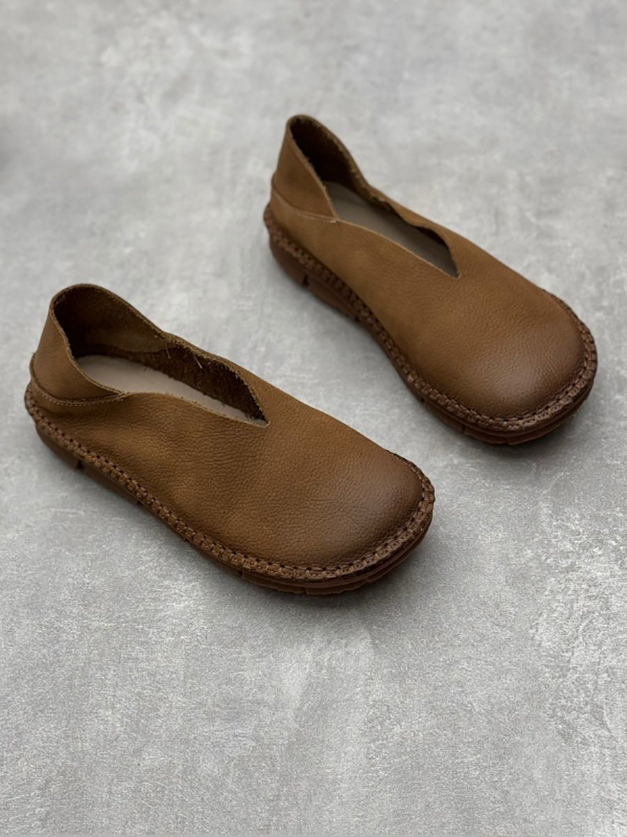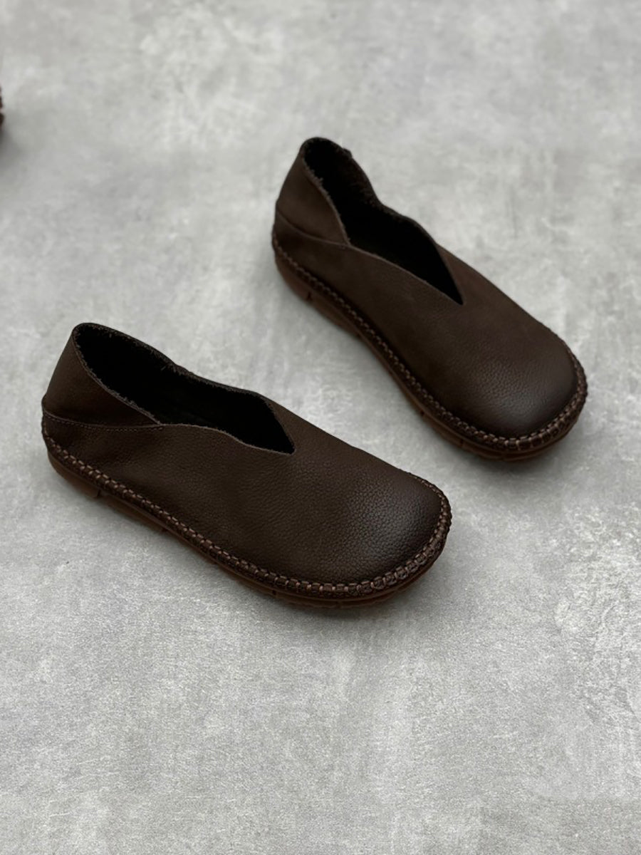 Zapatos planos suaves de cuero sólido vintage de verano para mujer