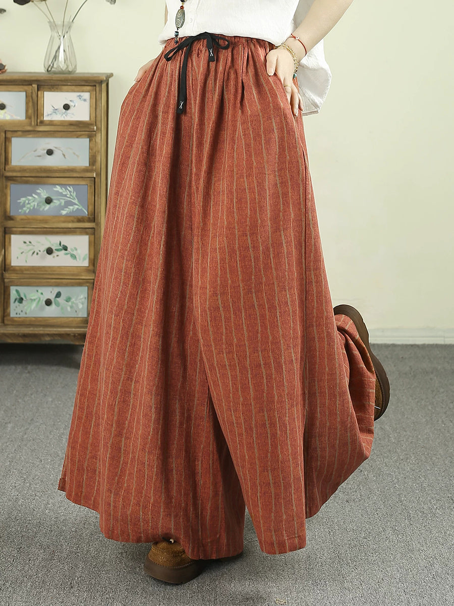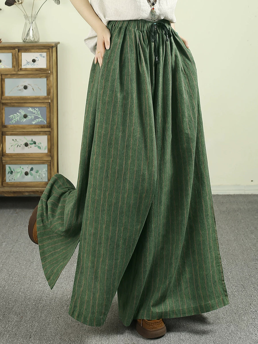 Pantalones anchos de mujer con rayas estilo vintage para verano