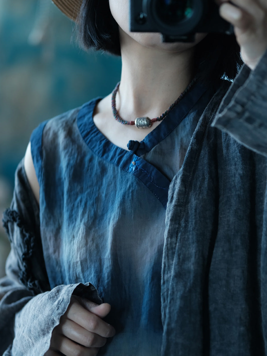 Este chaleco, confeccionado con ramio de alta calidad y con un patrón tie-dye único, cuenta con un elegante diseño de cuello en V que transmite un aire artístico. Perfecta para el clima cálido, esta prenda es imprescindible en el guardarropa de primavera y verano de cualquier mujer a la moda.
