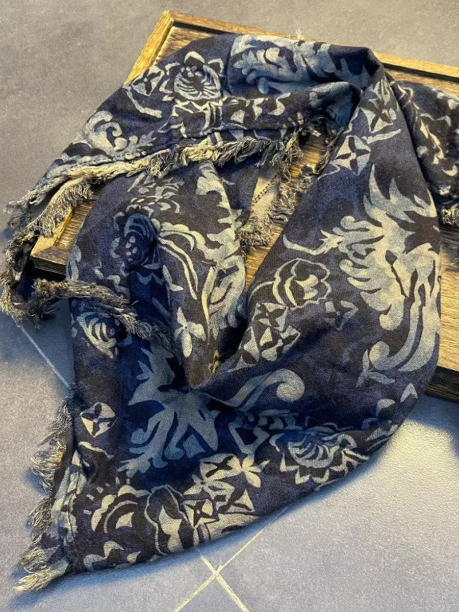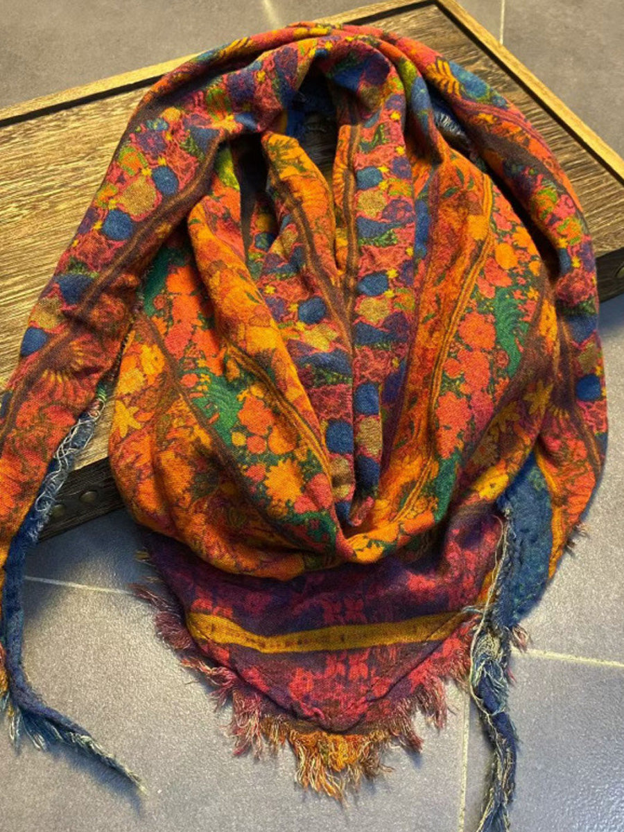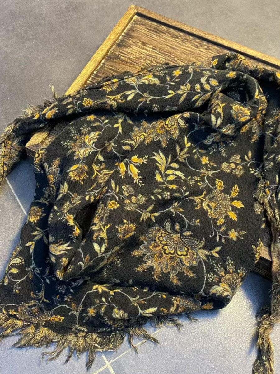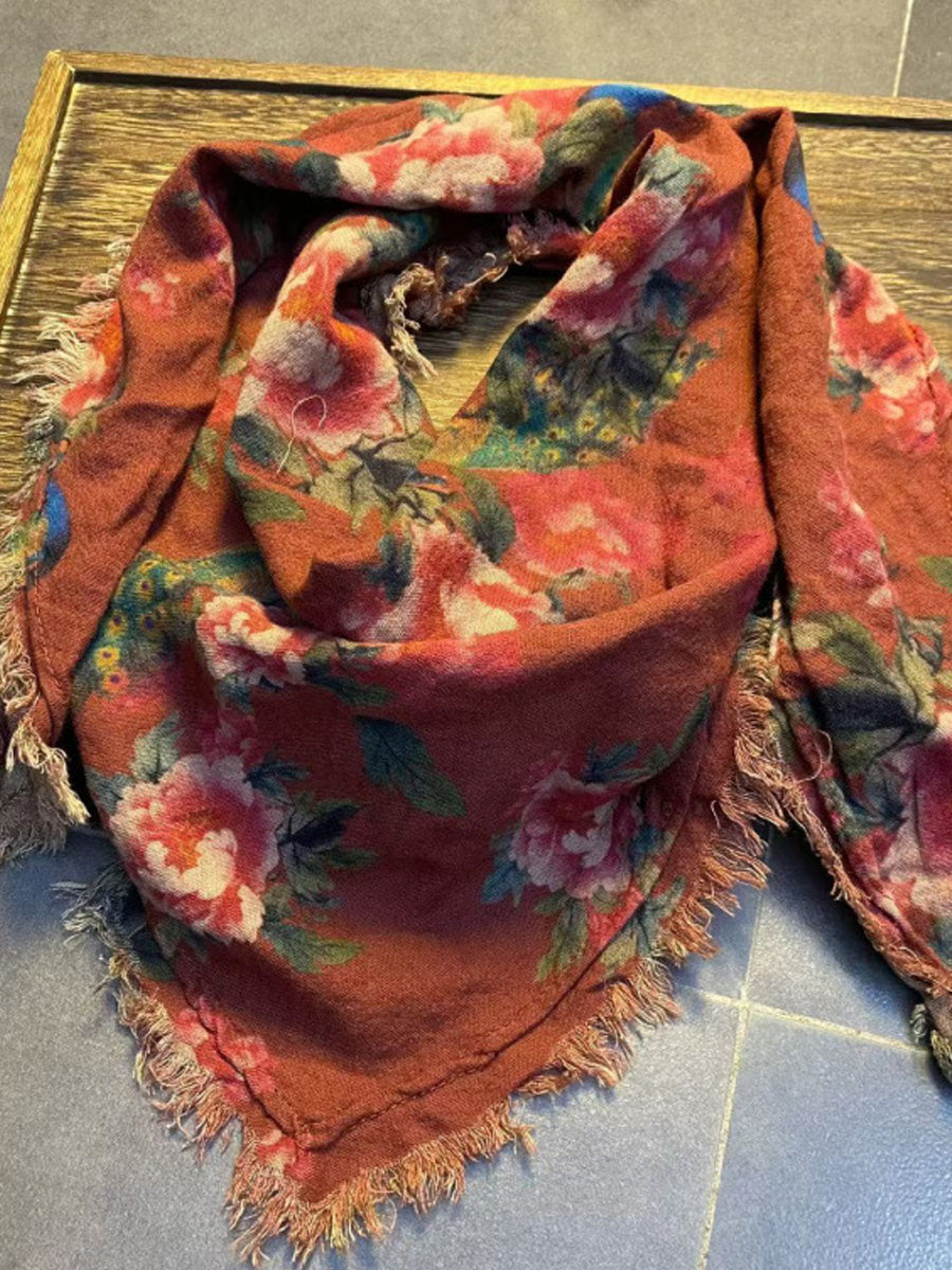 Pañuelo triangular vintage con flores y borde sin rematar para mujer