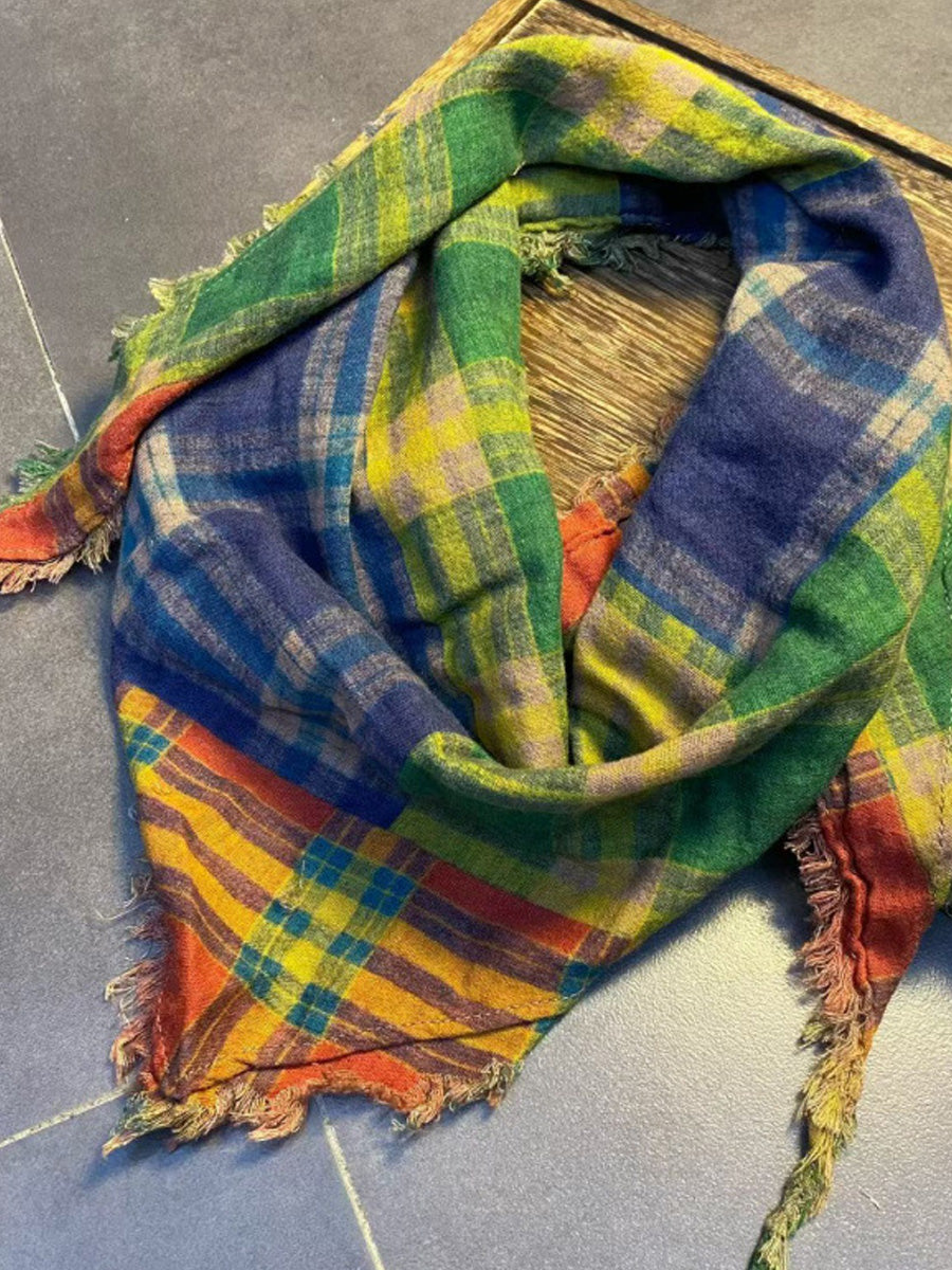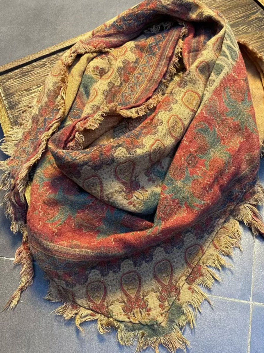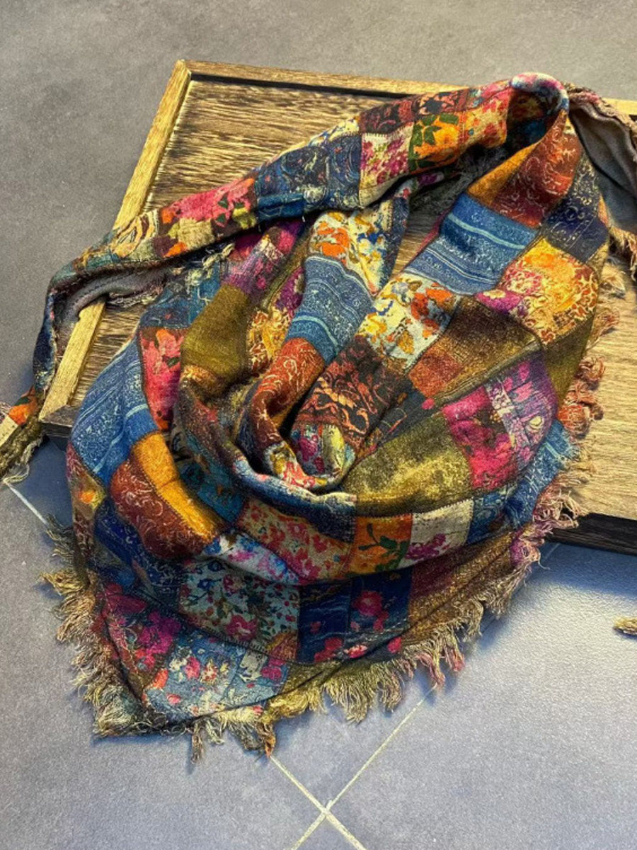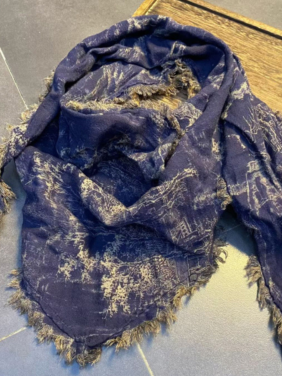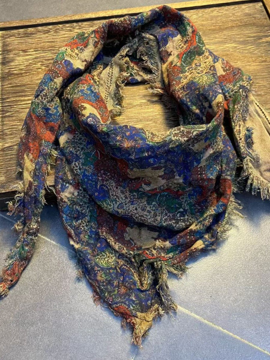 Pañuelo triangular vintage con flores y borde sin rematar para mujer