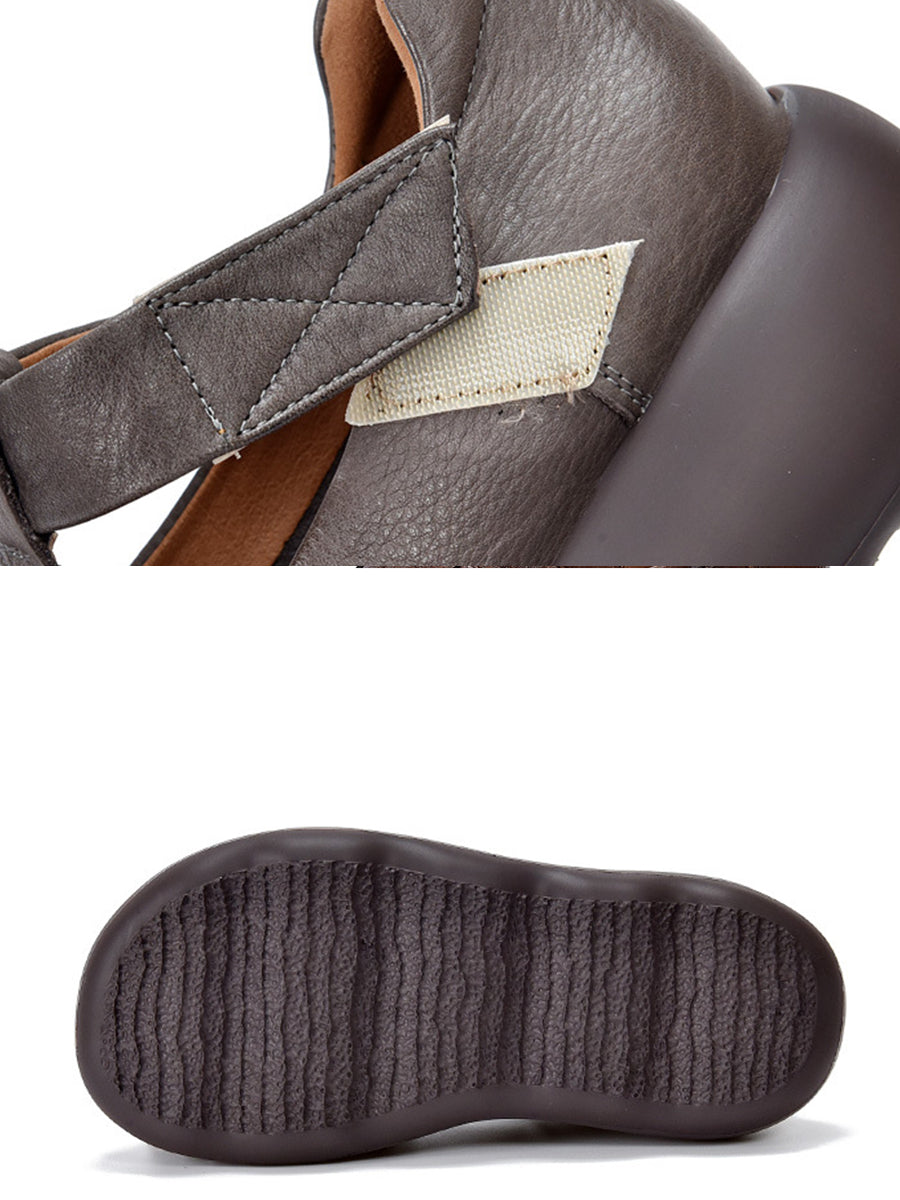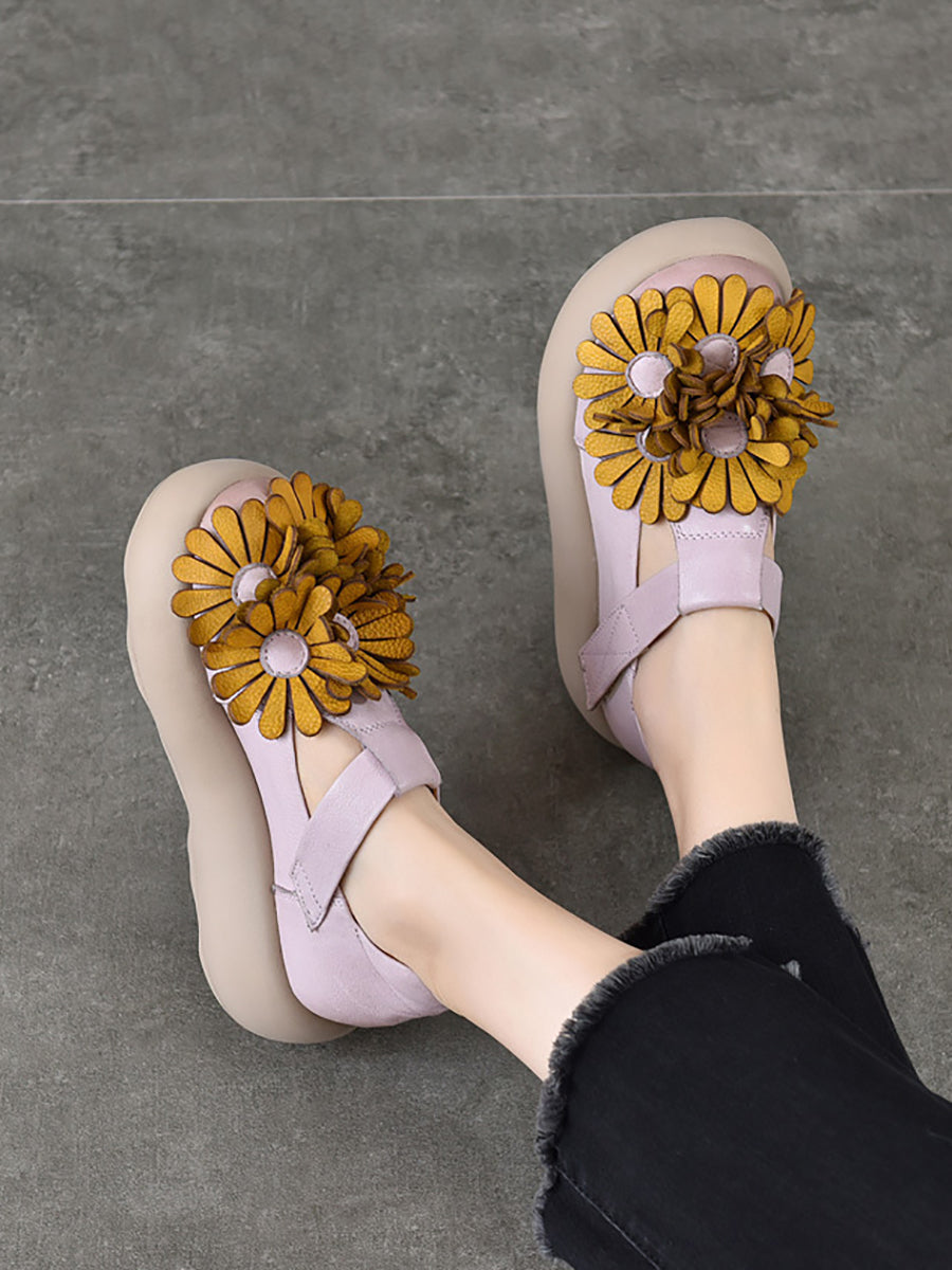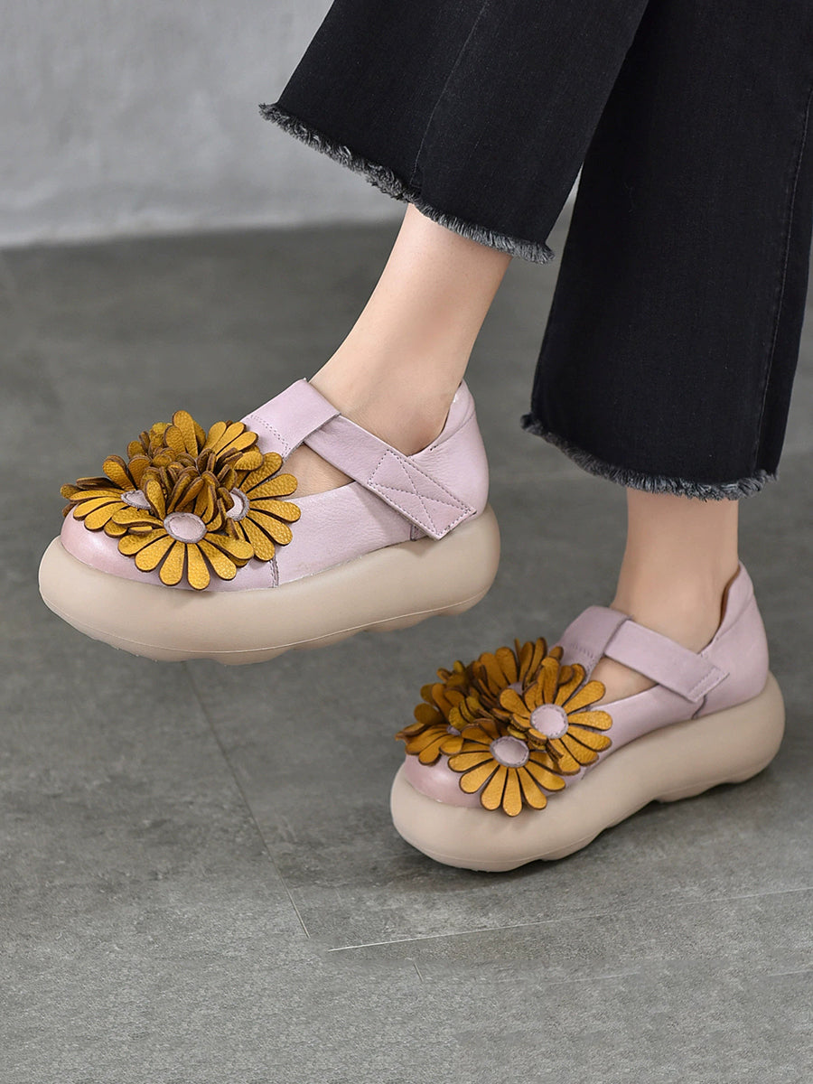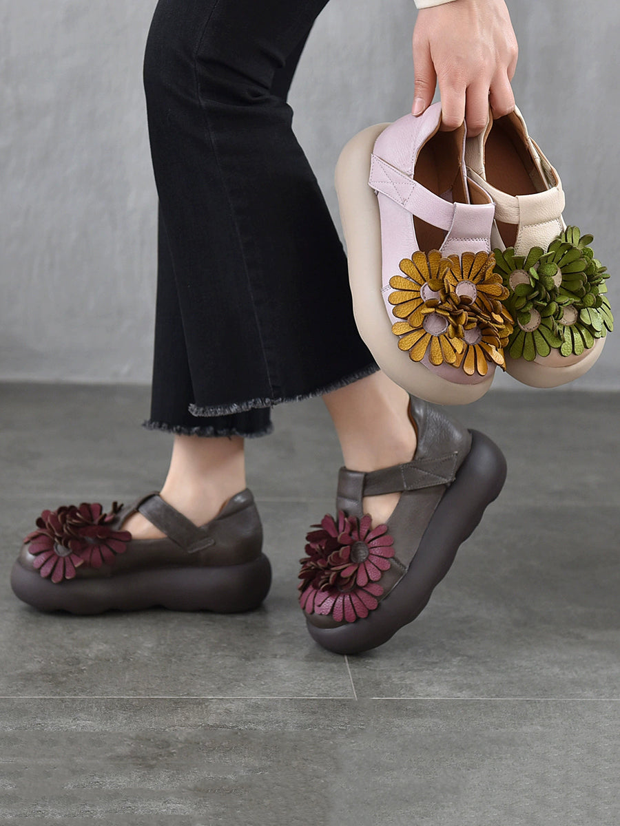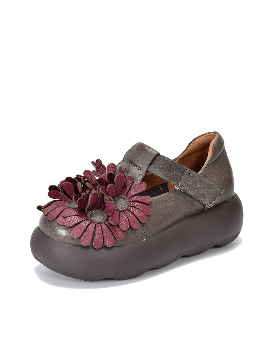 Zapatos vintage de plataforma con flores de piel auténtica para mujer