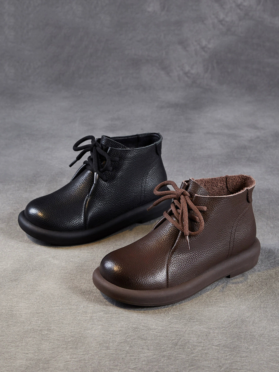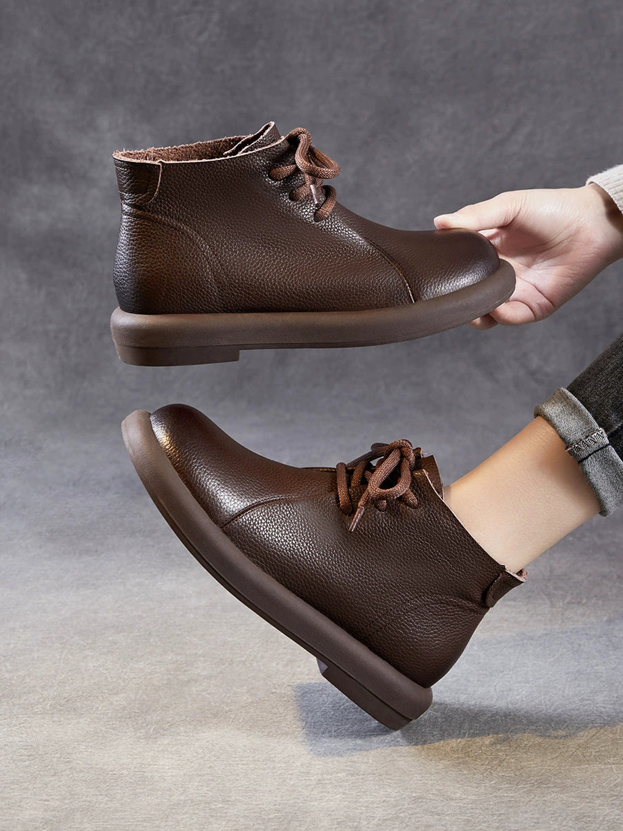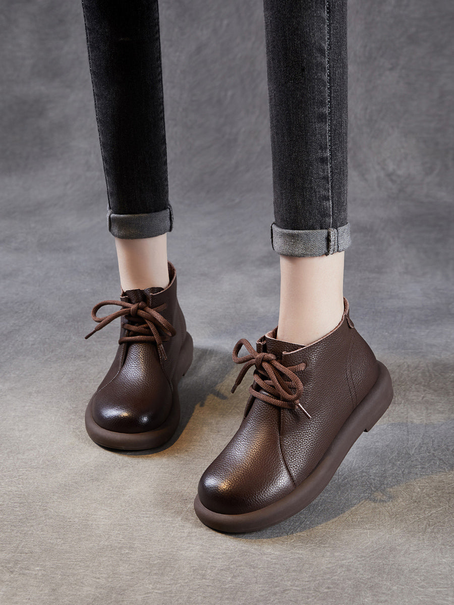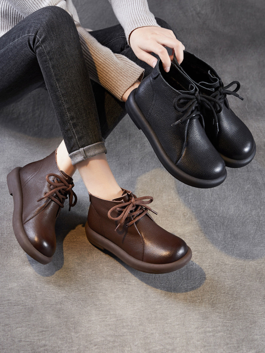 Botines vintage de piel auténtica con tacón bajo para mujer