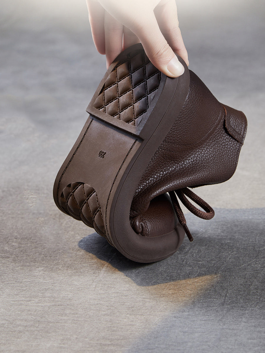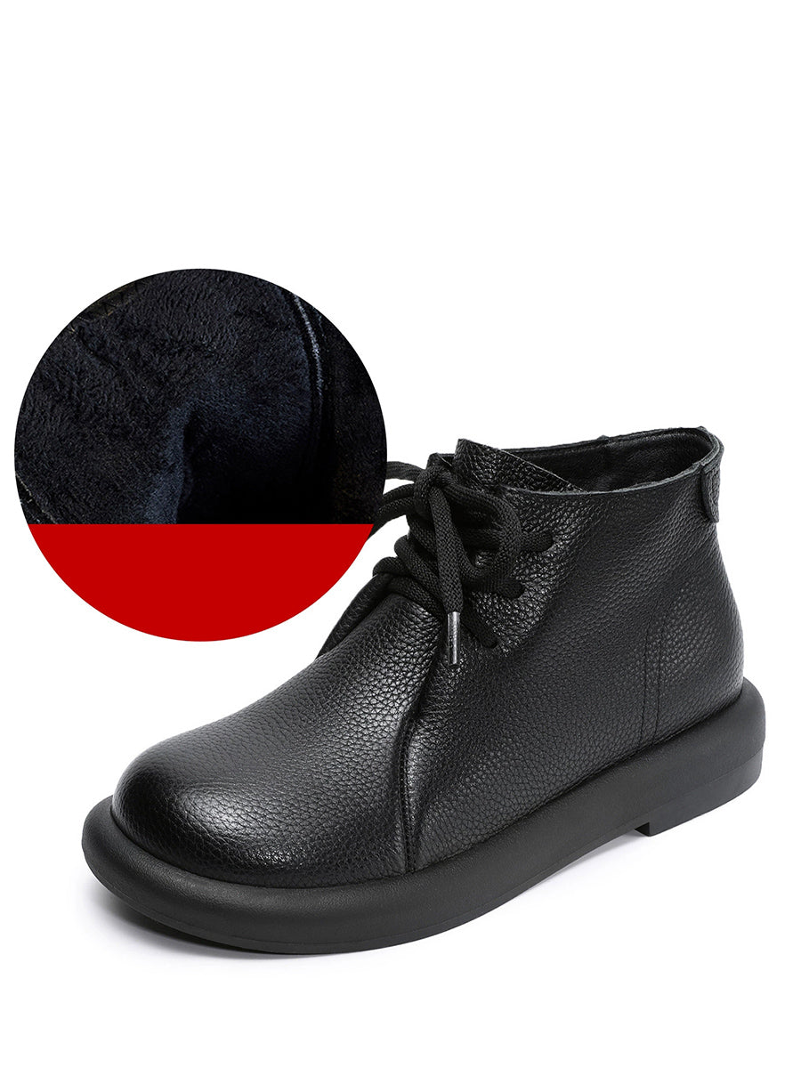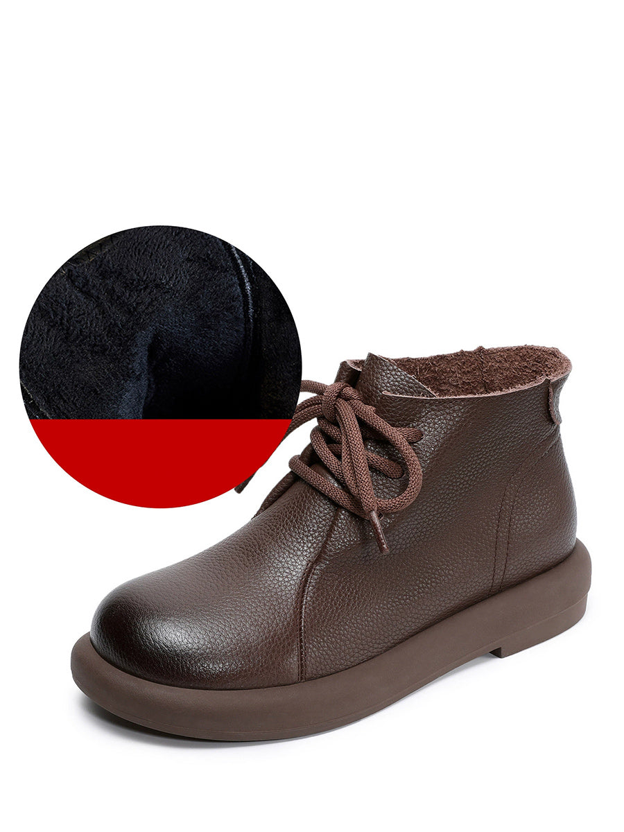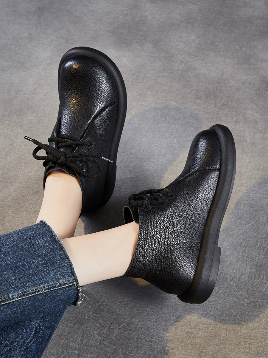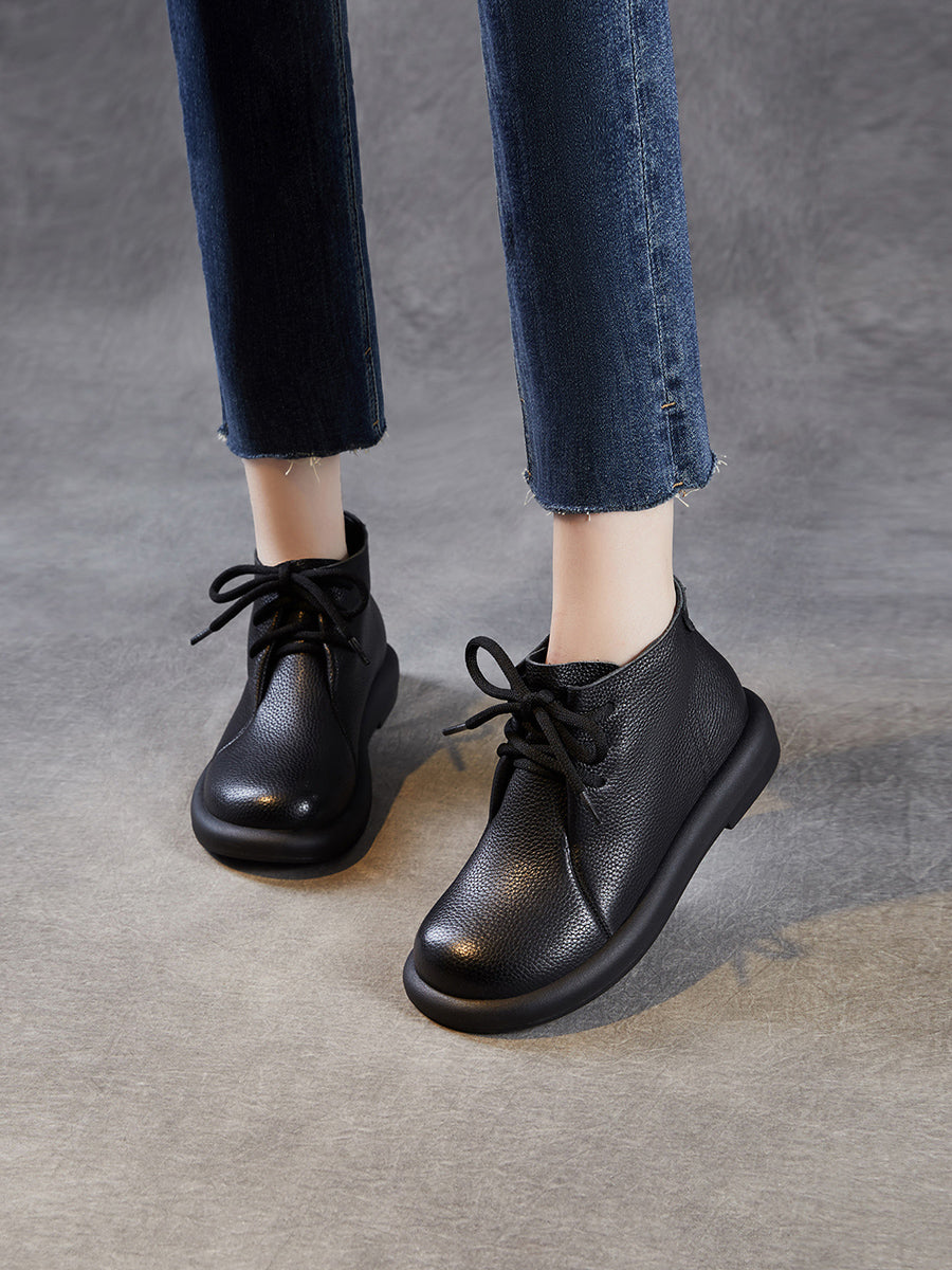 Botines vintage de piel auténtica con tacón bajo para mujer