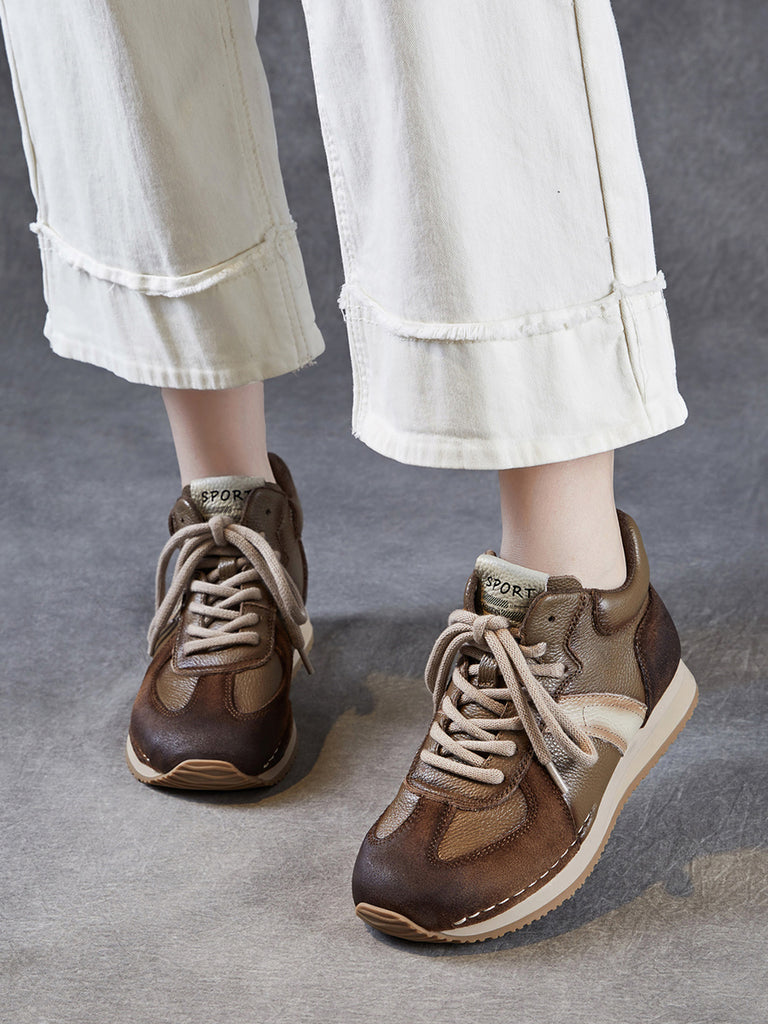 Zapatos planos vintage de piel auténtica con tiras para mujer