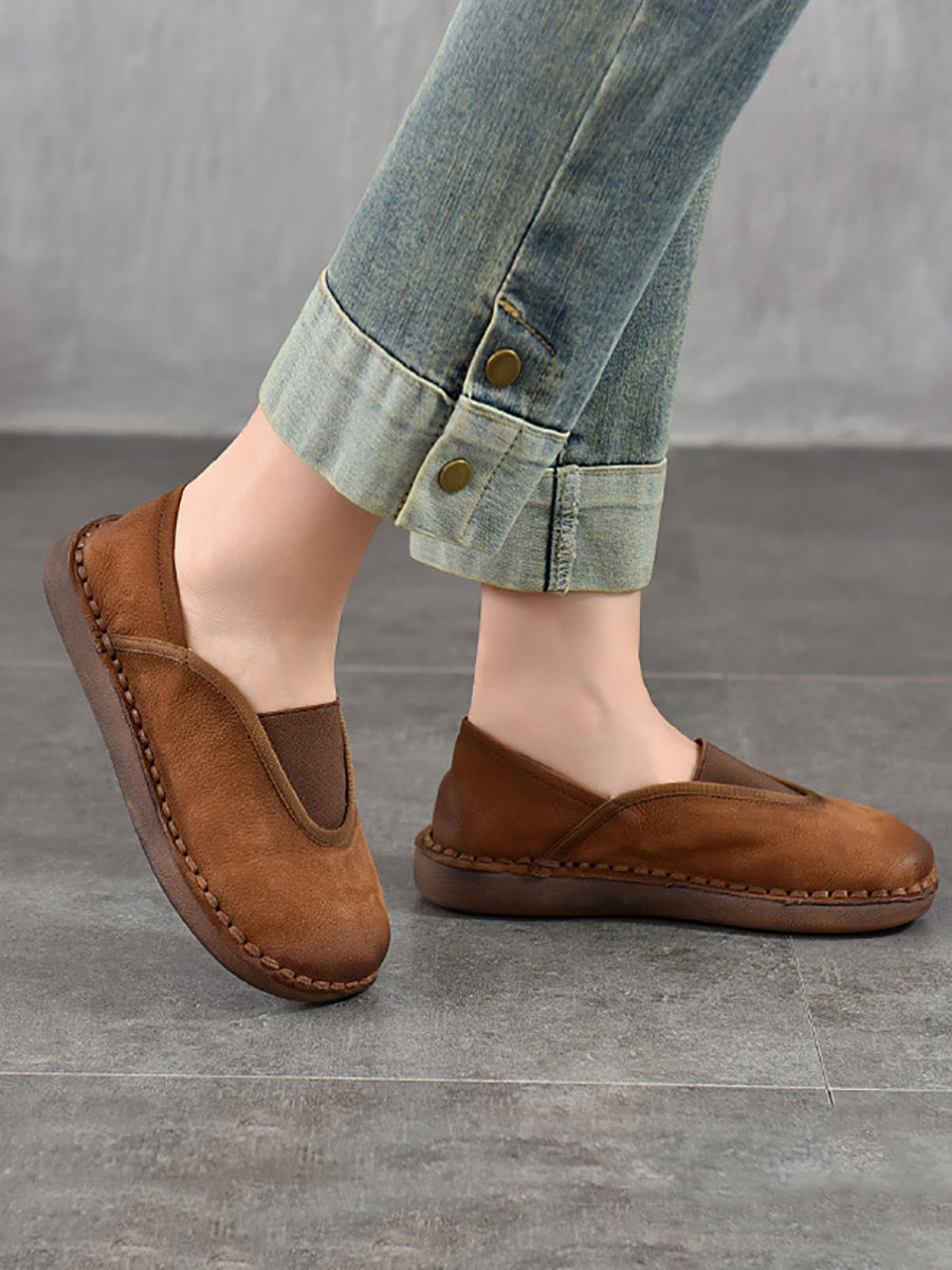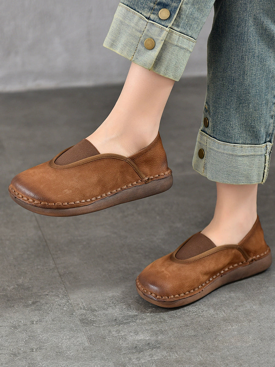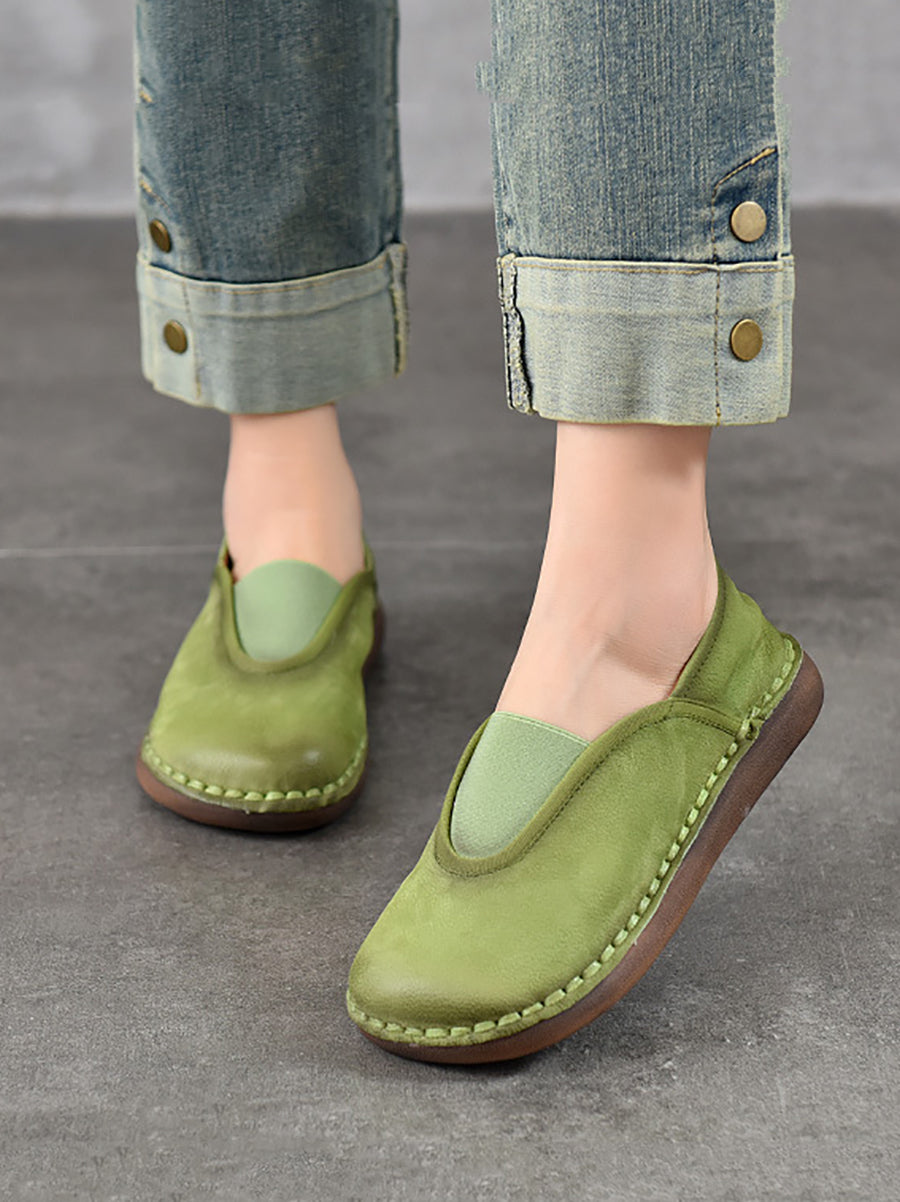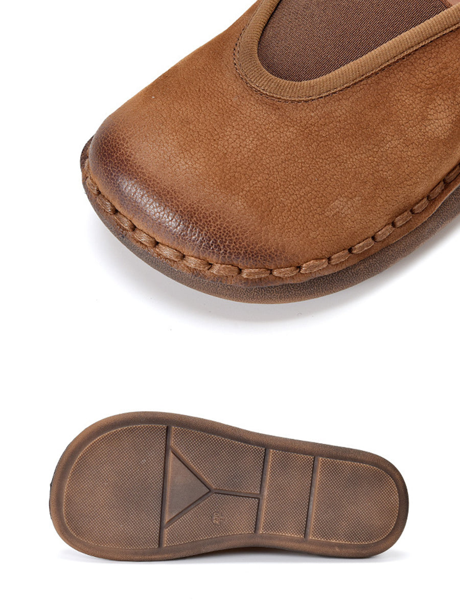 Zapatos planos vintage de piel auténtica con empalmes para mujer