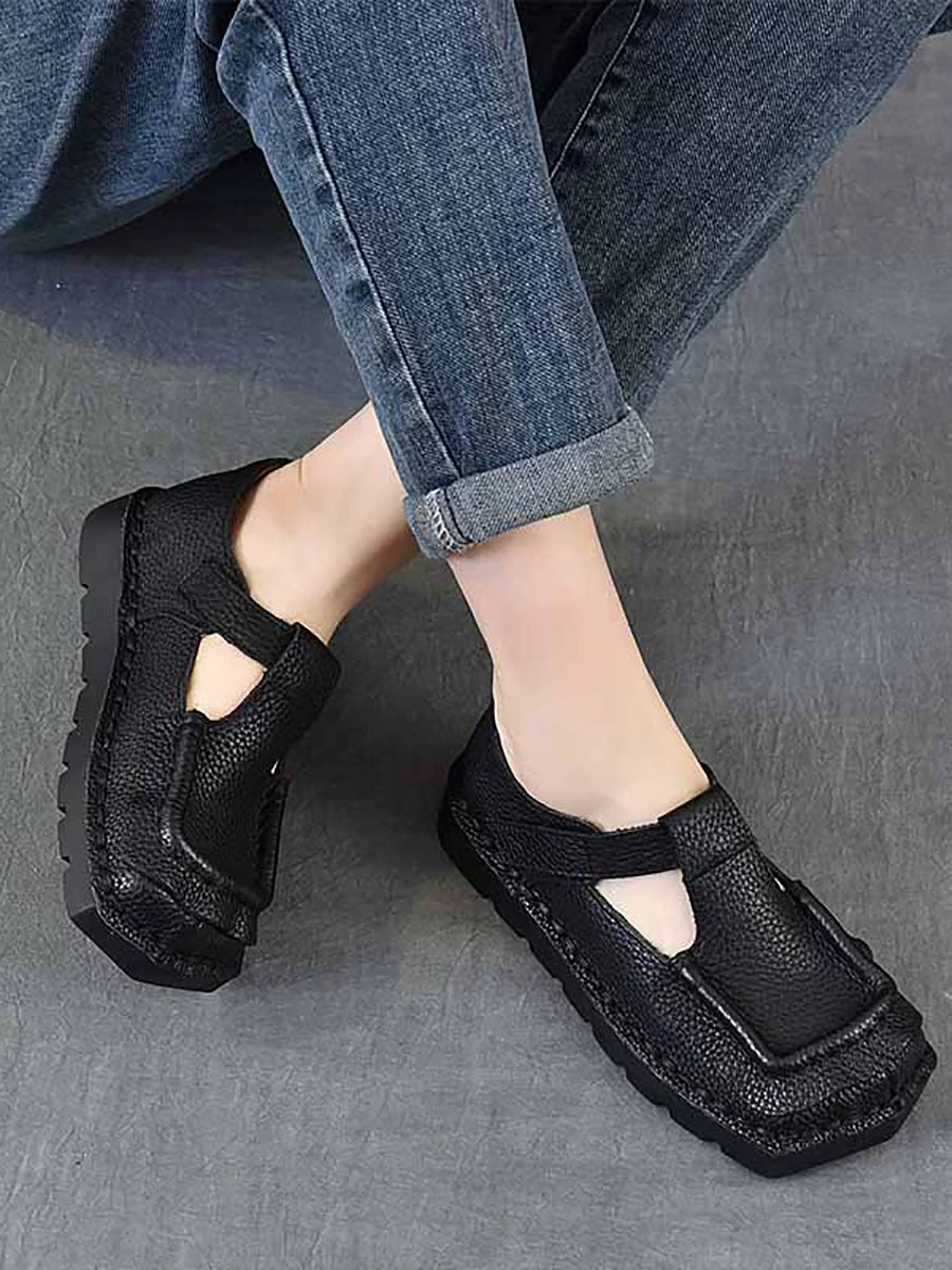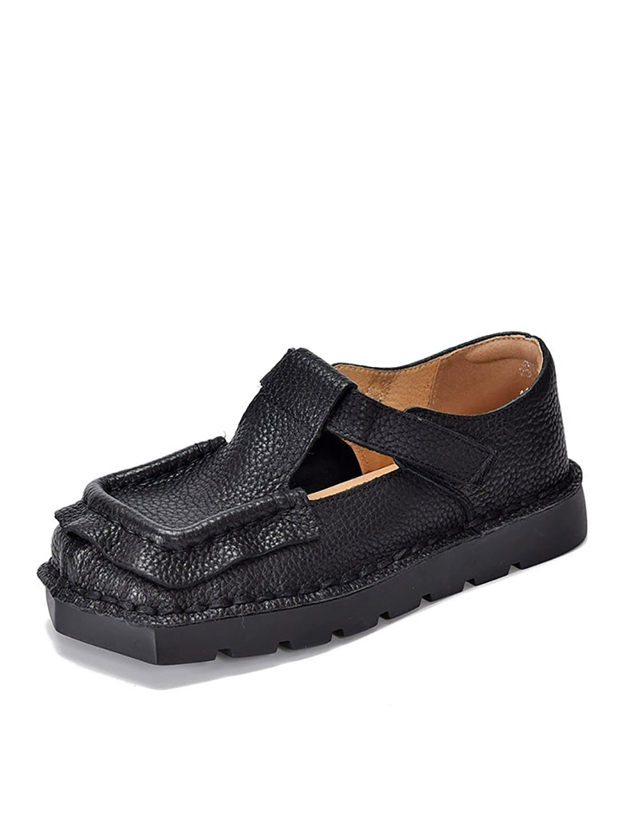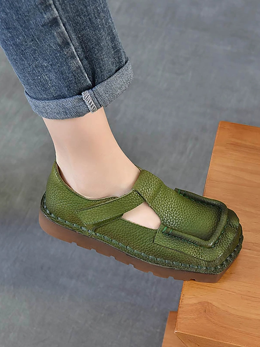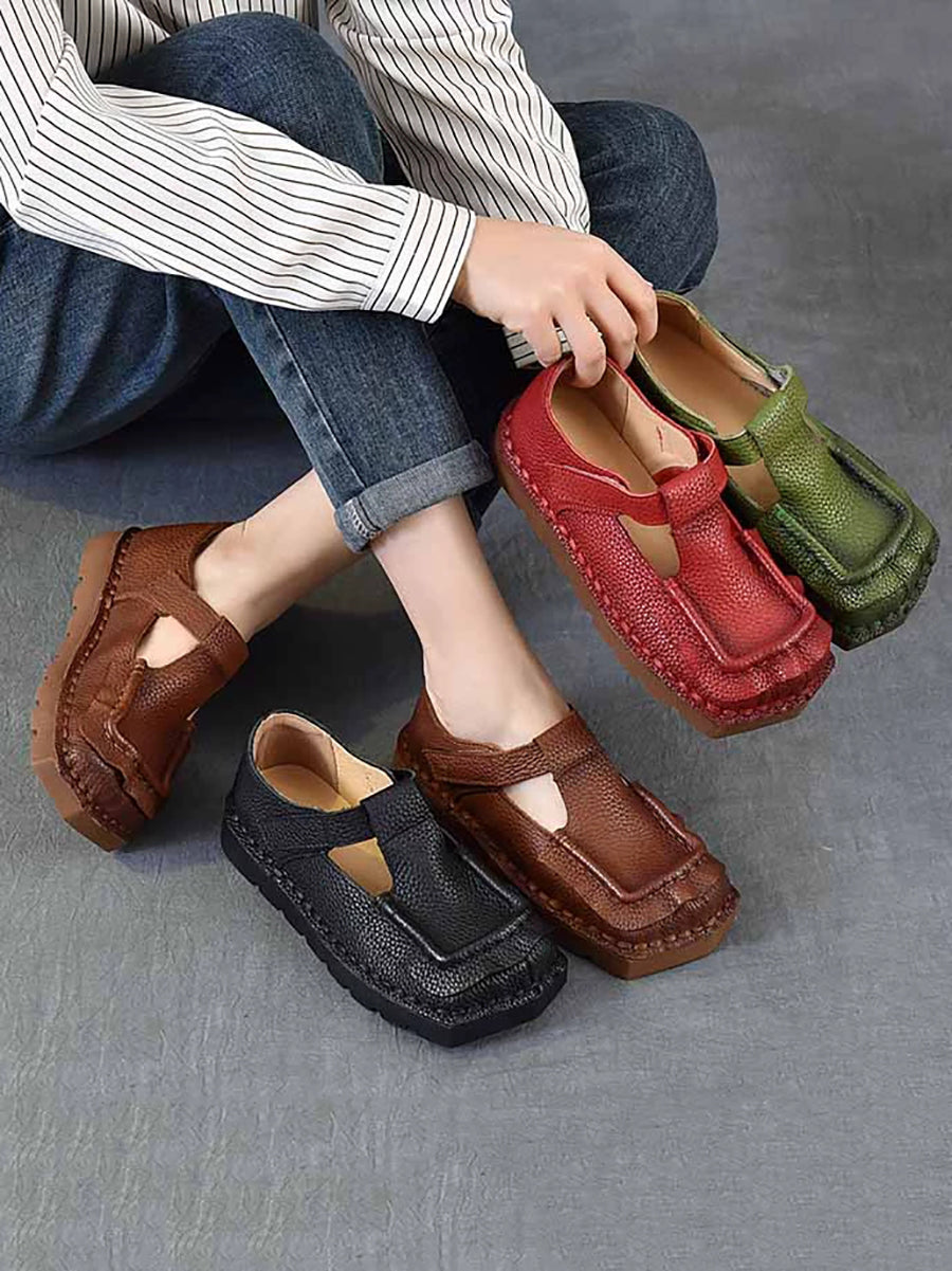 Zapatos vintage de piel auténtica con punta cuadrada para mujer
