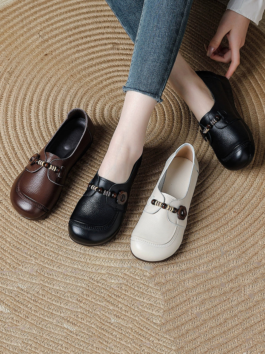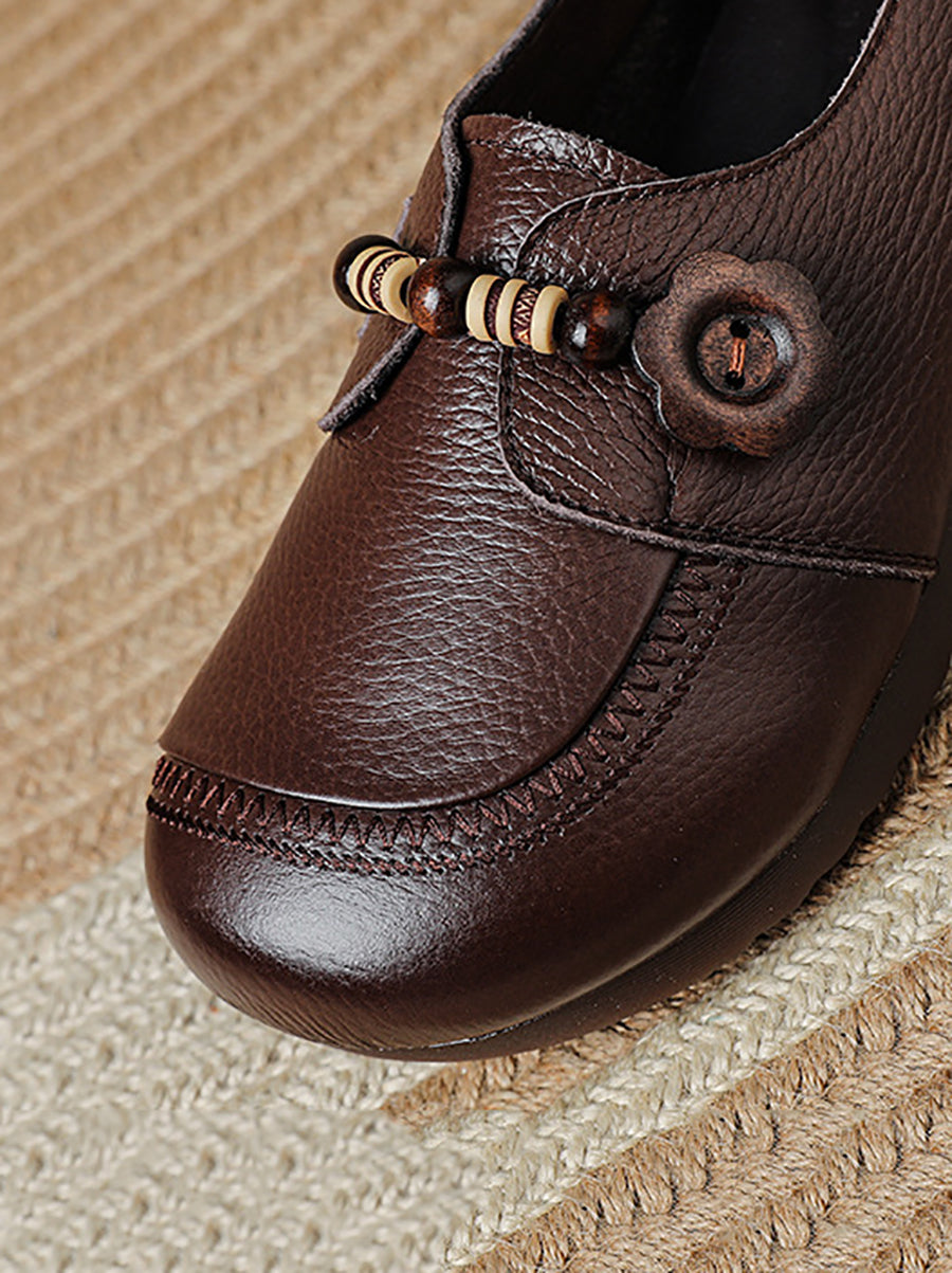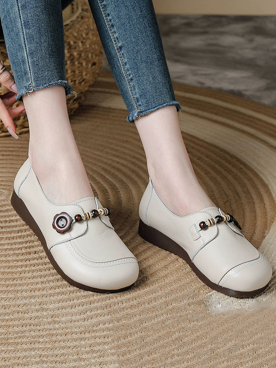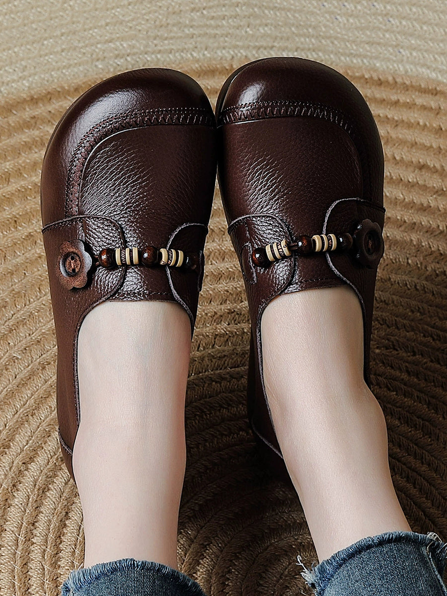 Zapatos vintage de cuero genuino con cuentas de madera para mujer