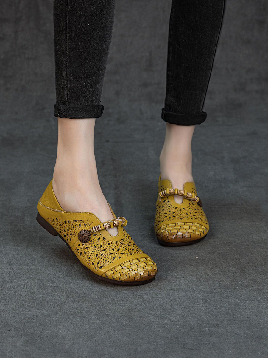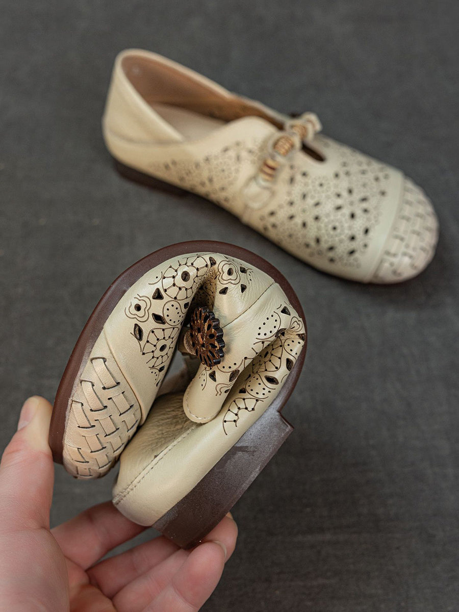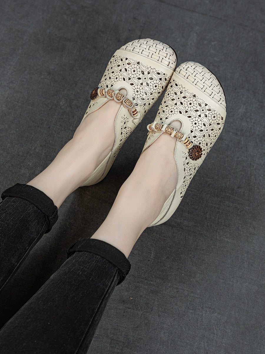 Sandalias vintage de piel auténtica calada para mujer