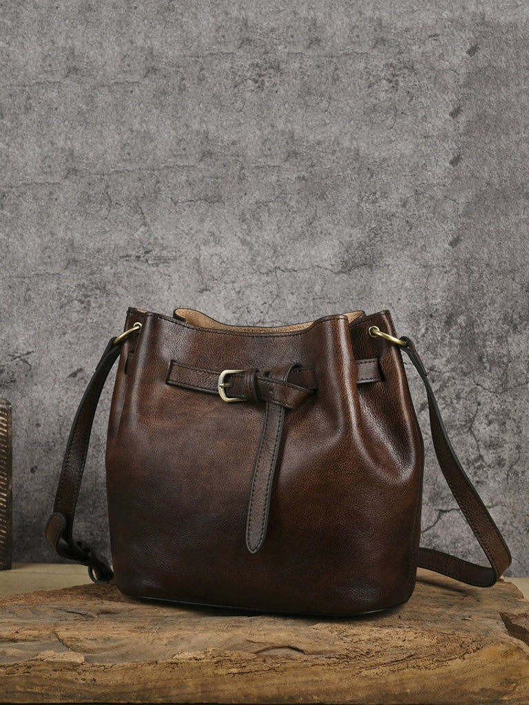 Bolso de hombro vintage de cuero de gran capacidad para mujer