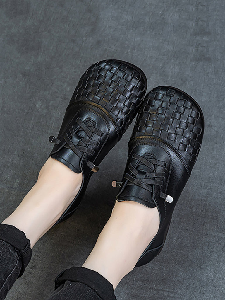 Zapatos de tacón bajo con tejido de cuero vintage para mujer