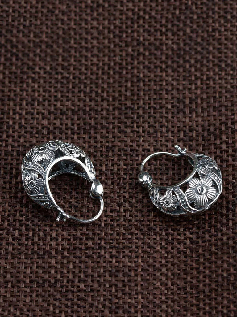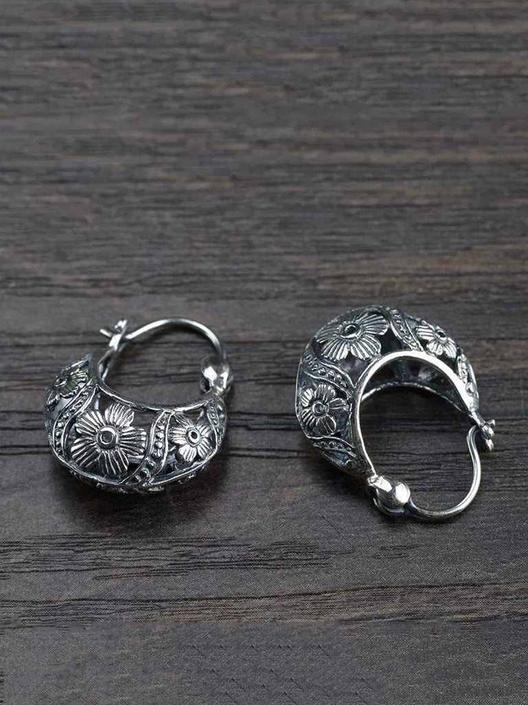 Pendientes vintage de plata S925 con forma de flor para mujer