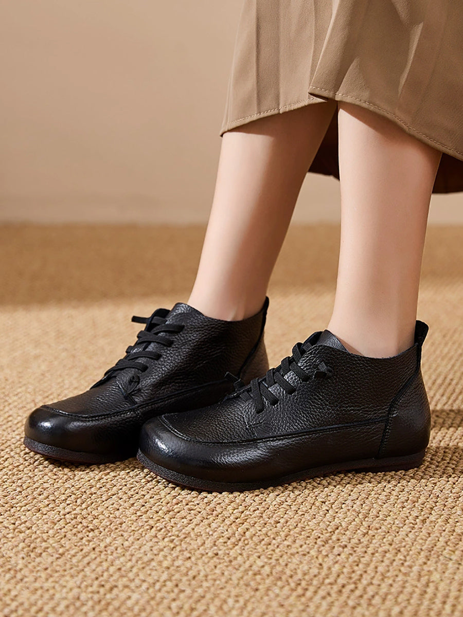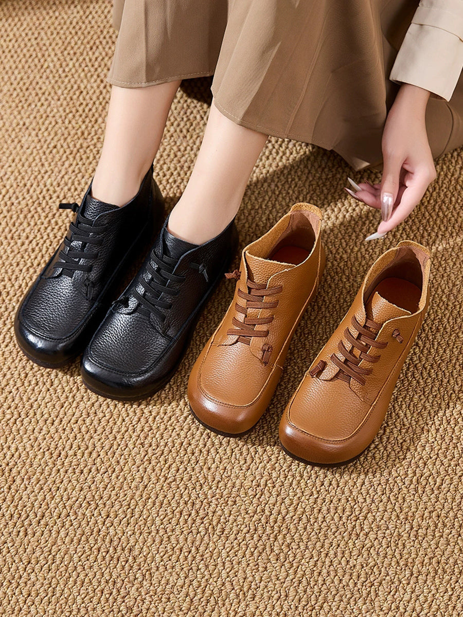 Botas vintage de piel suave con tacón bajo para mujer