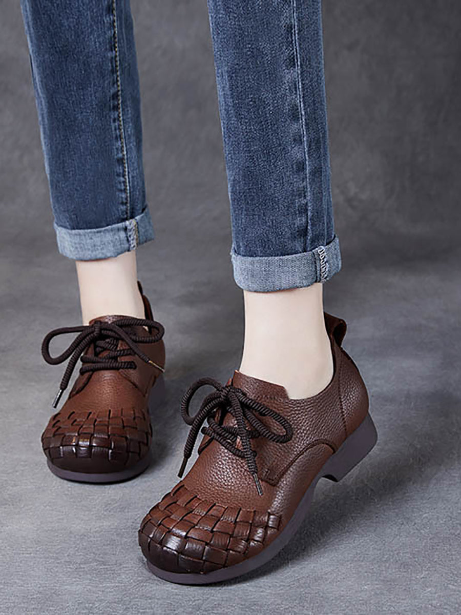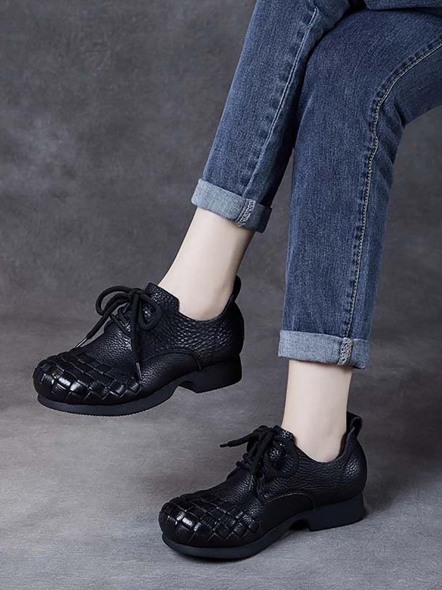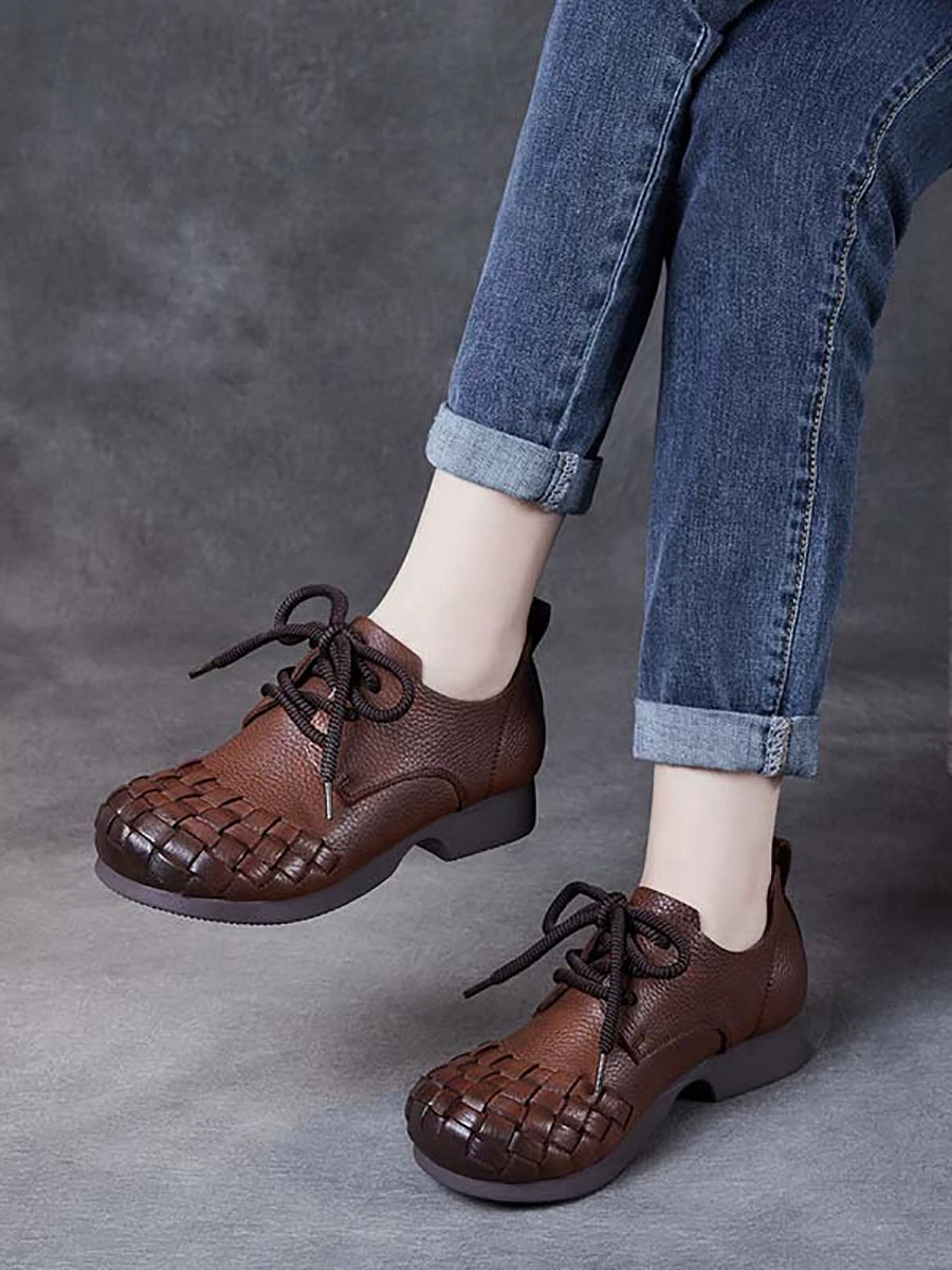 Zapatos de tacón bajo vintage de piel suave para mujer