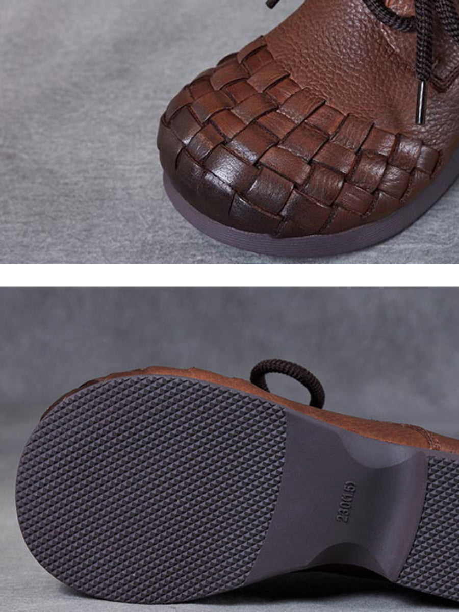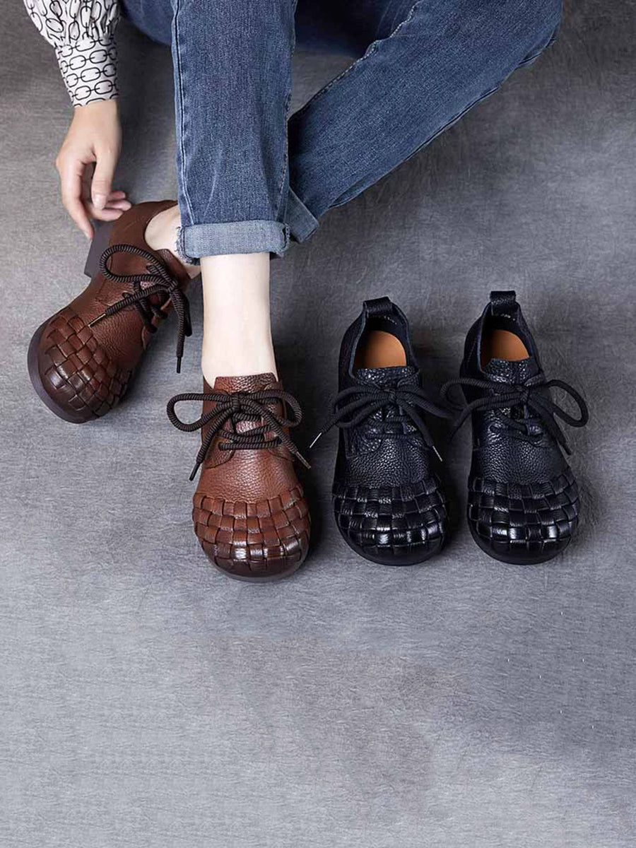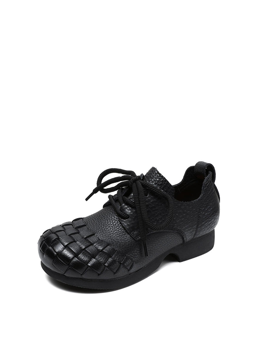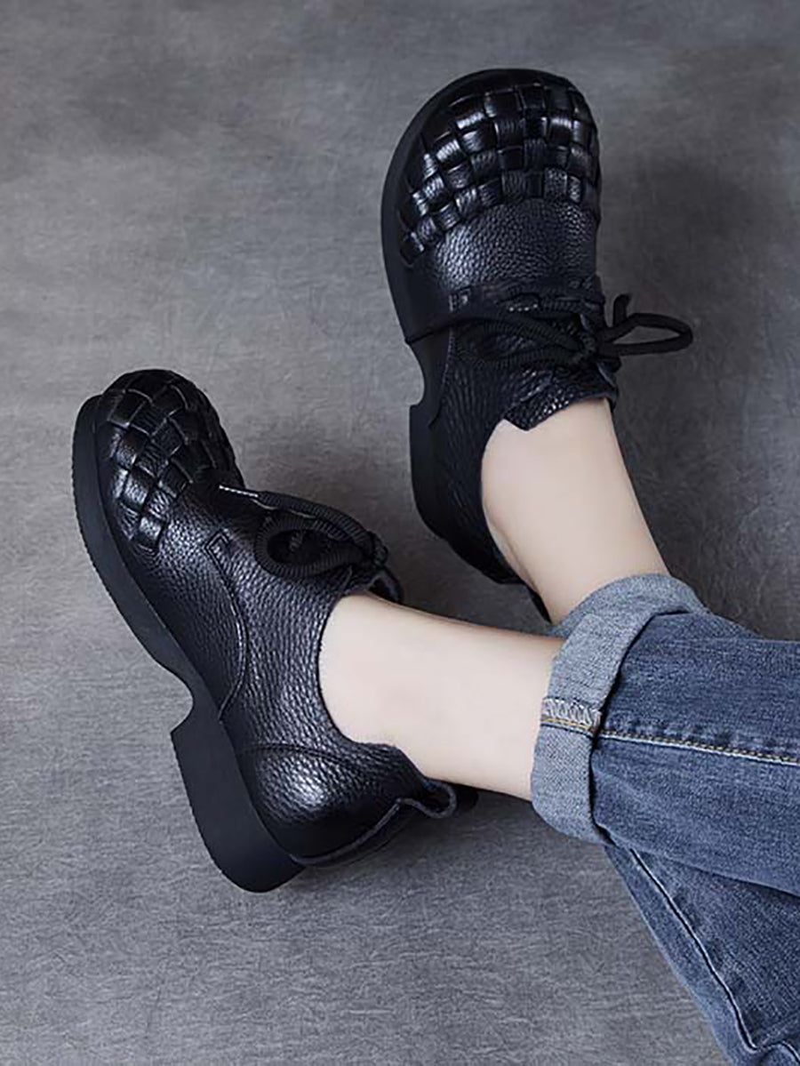 Zapatos de tacón bajo vintage de piel suave para mujer
