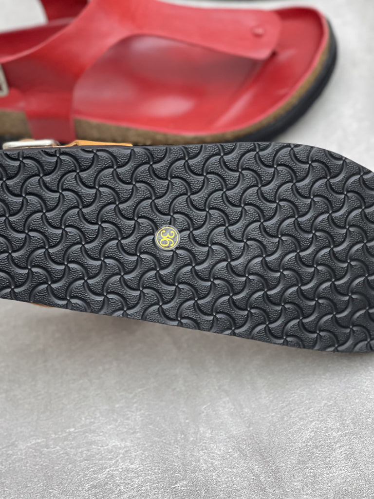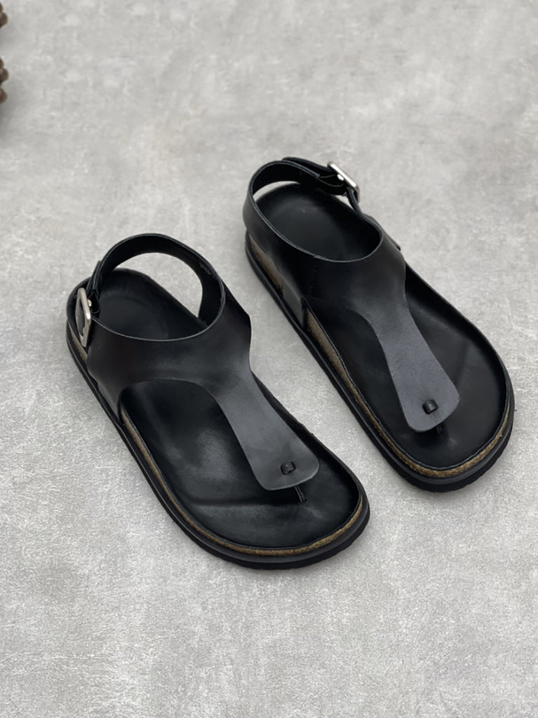 Sandalias de tacón bajo de piel auténtica de verano vintage para mujer