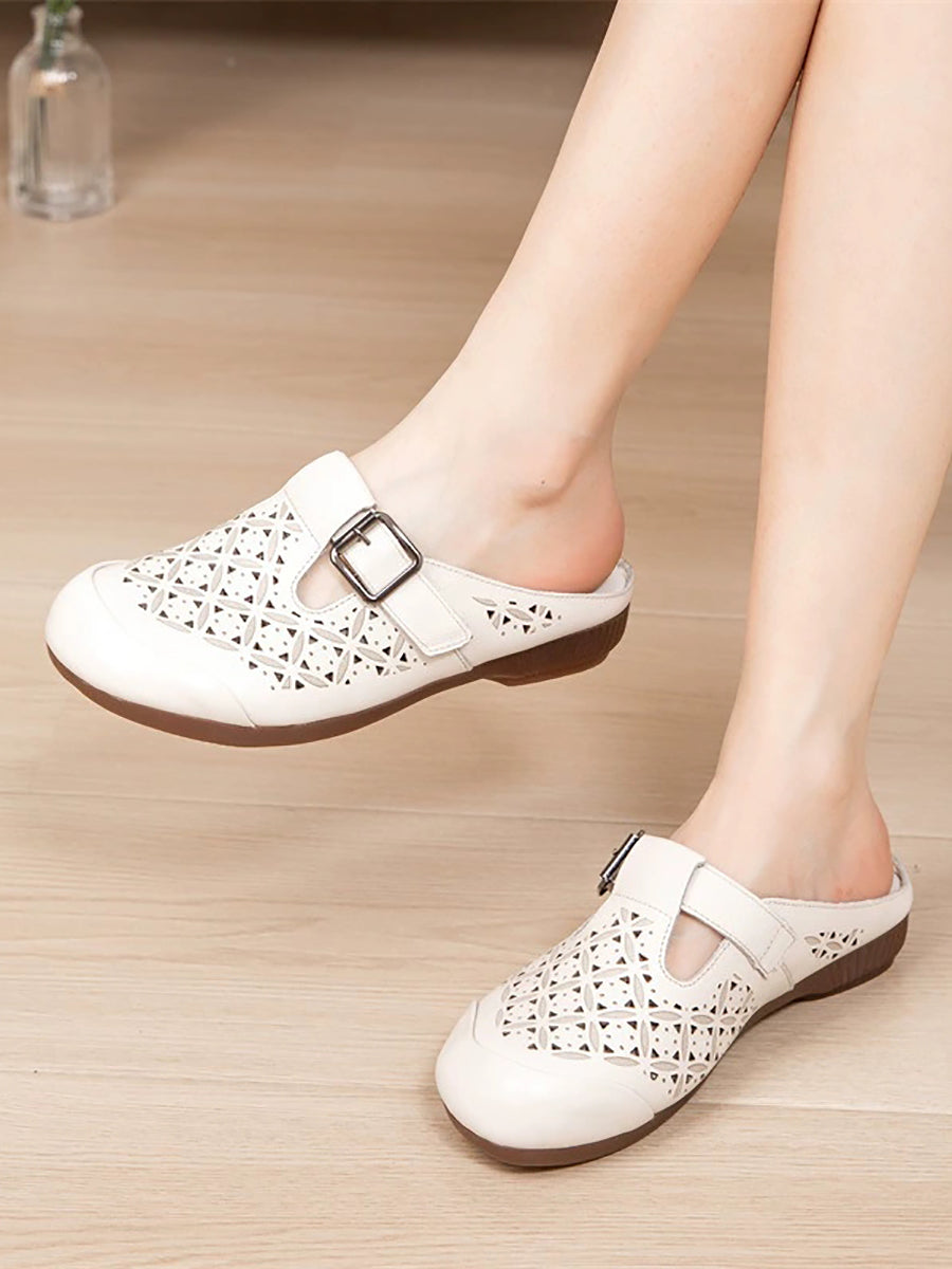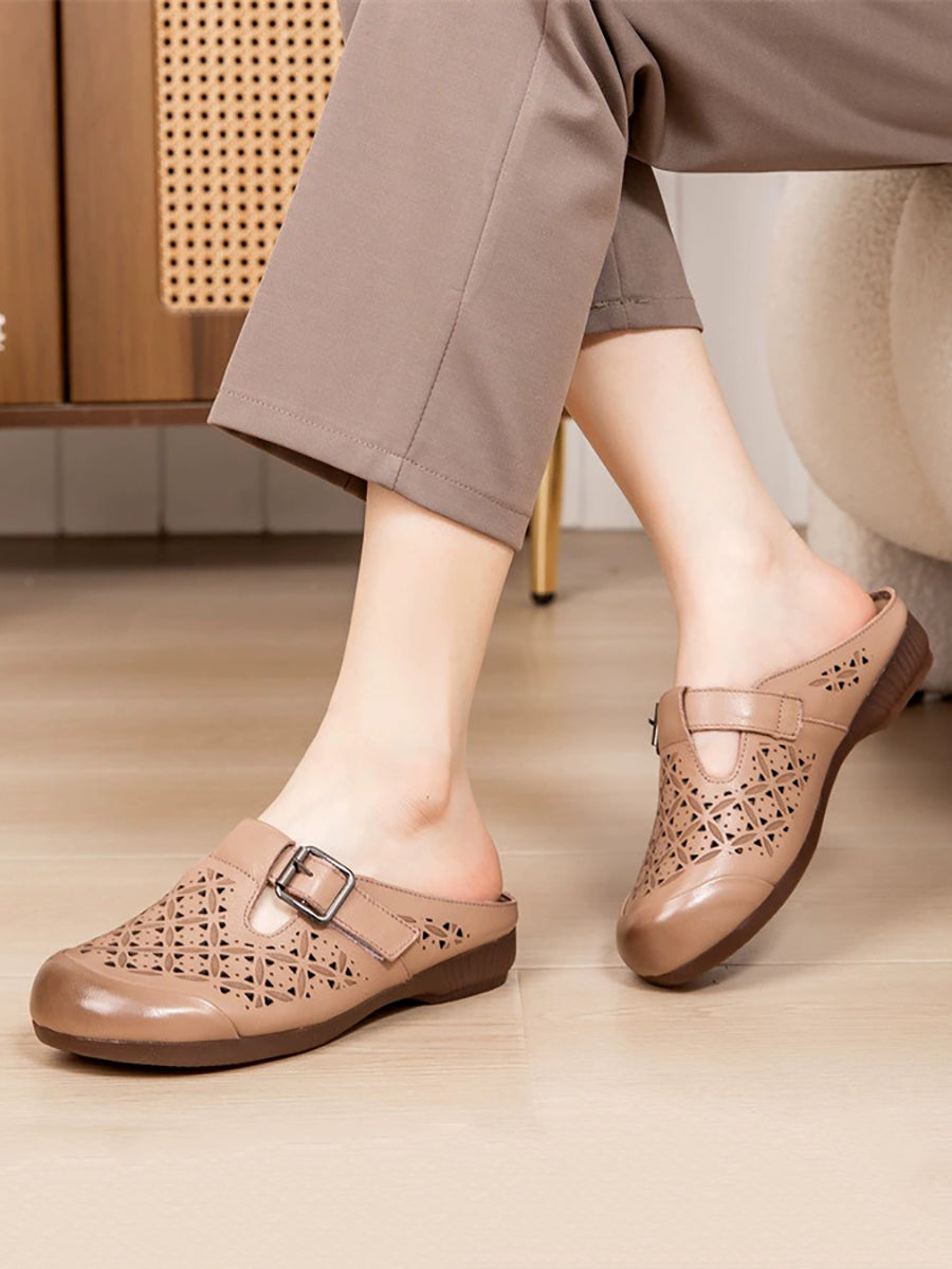 Pantuflas de cuero caladas estilo vintage de verano para mujer