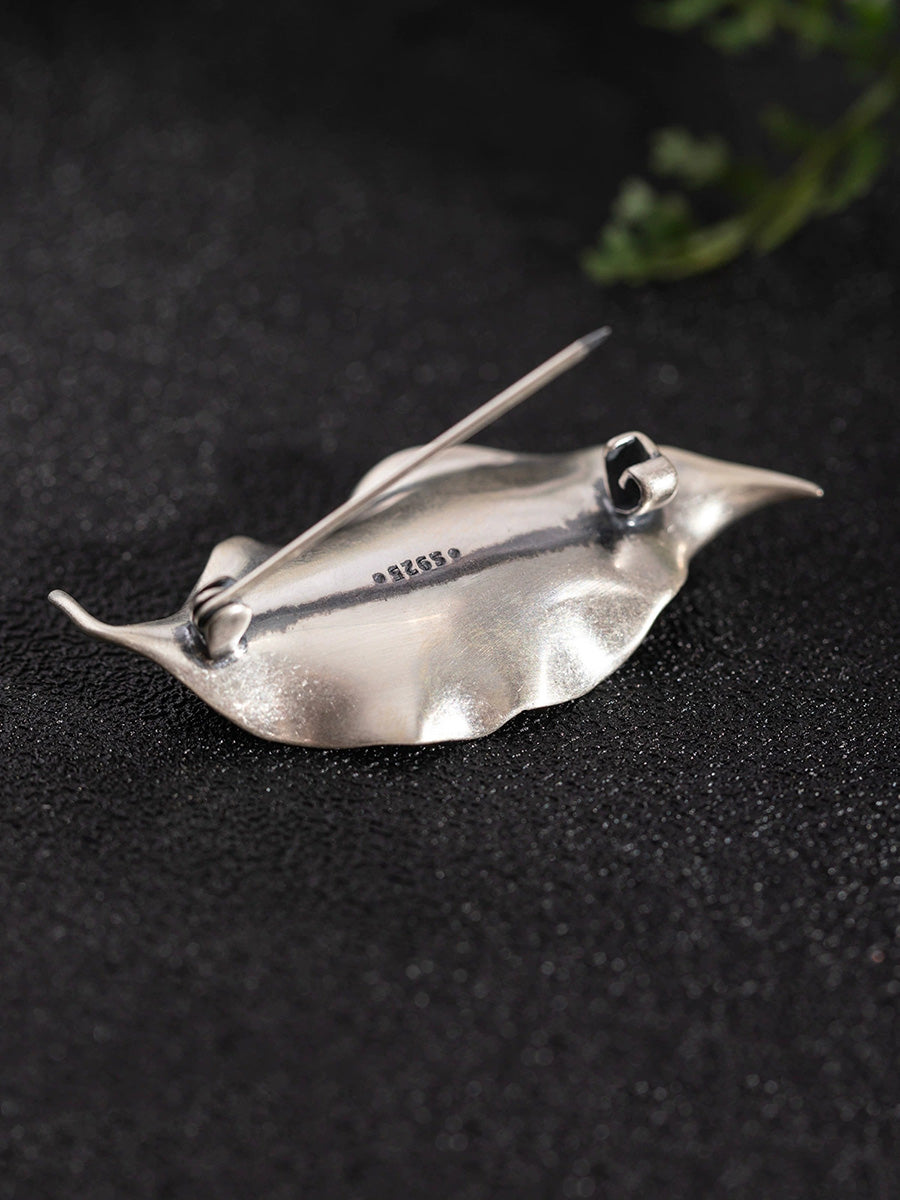 Broche vintage de plata S925 con hojas desgastadas para mujer