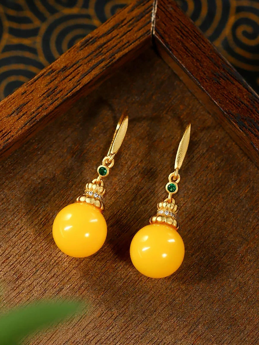 Pendientes vintage de jade amarillo para mujer