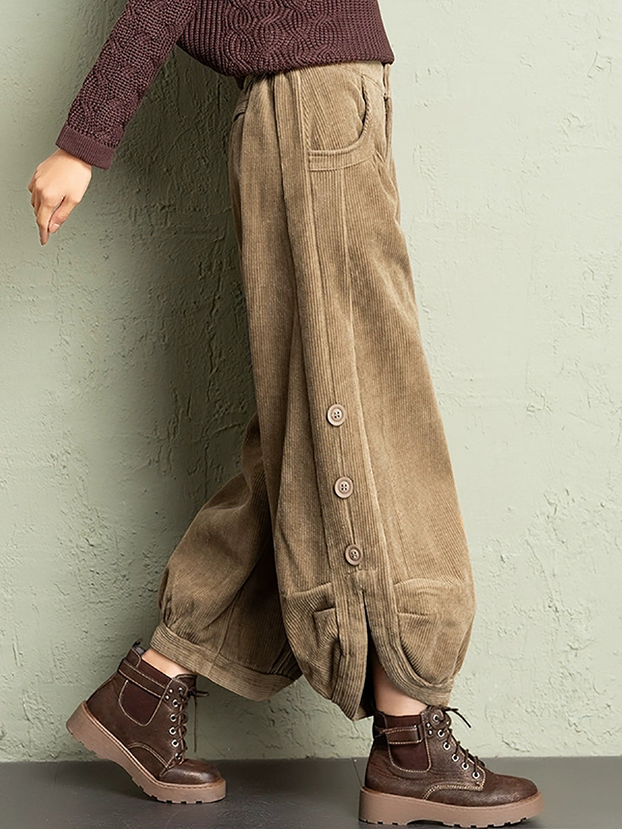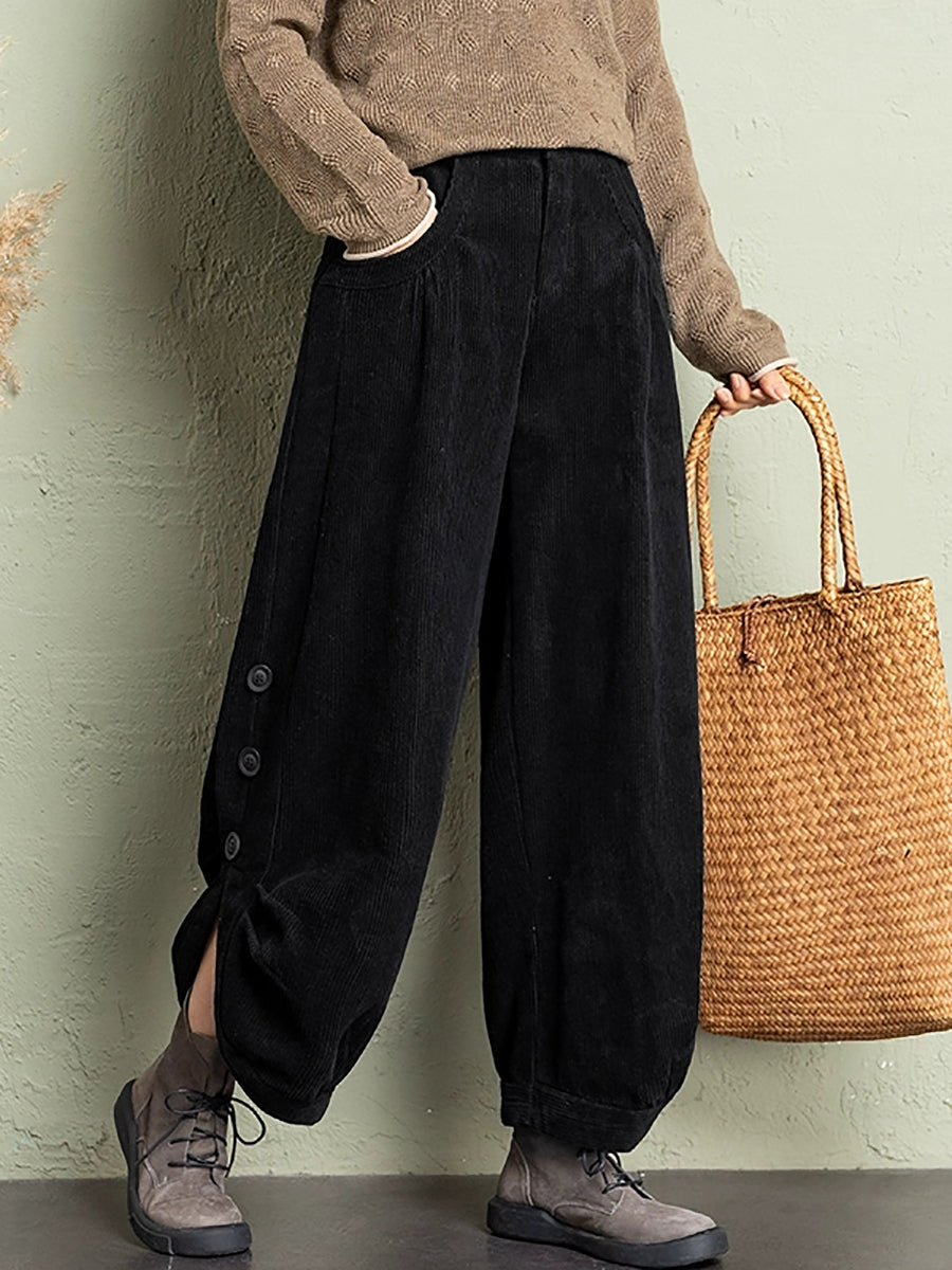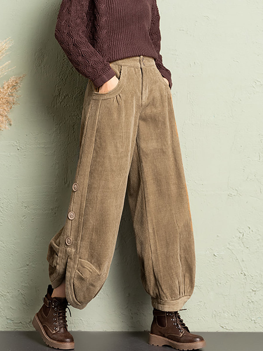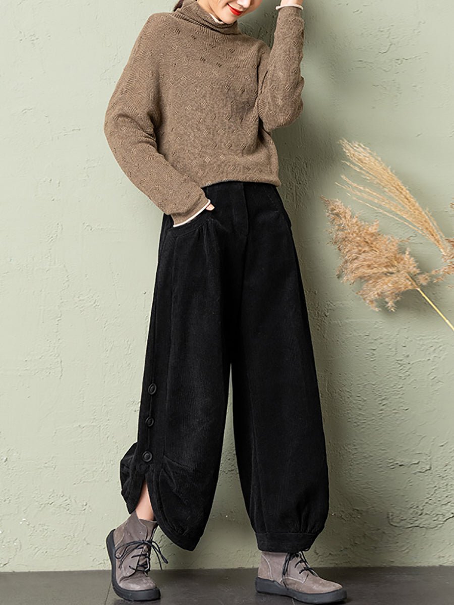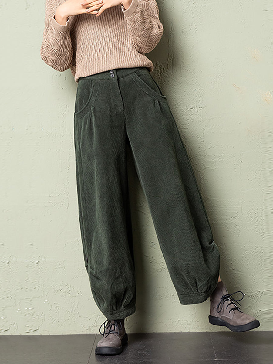 Pantalones bombachos de pana de color liso para mujer, ideales para el invierno.