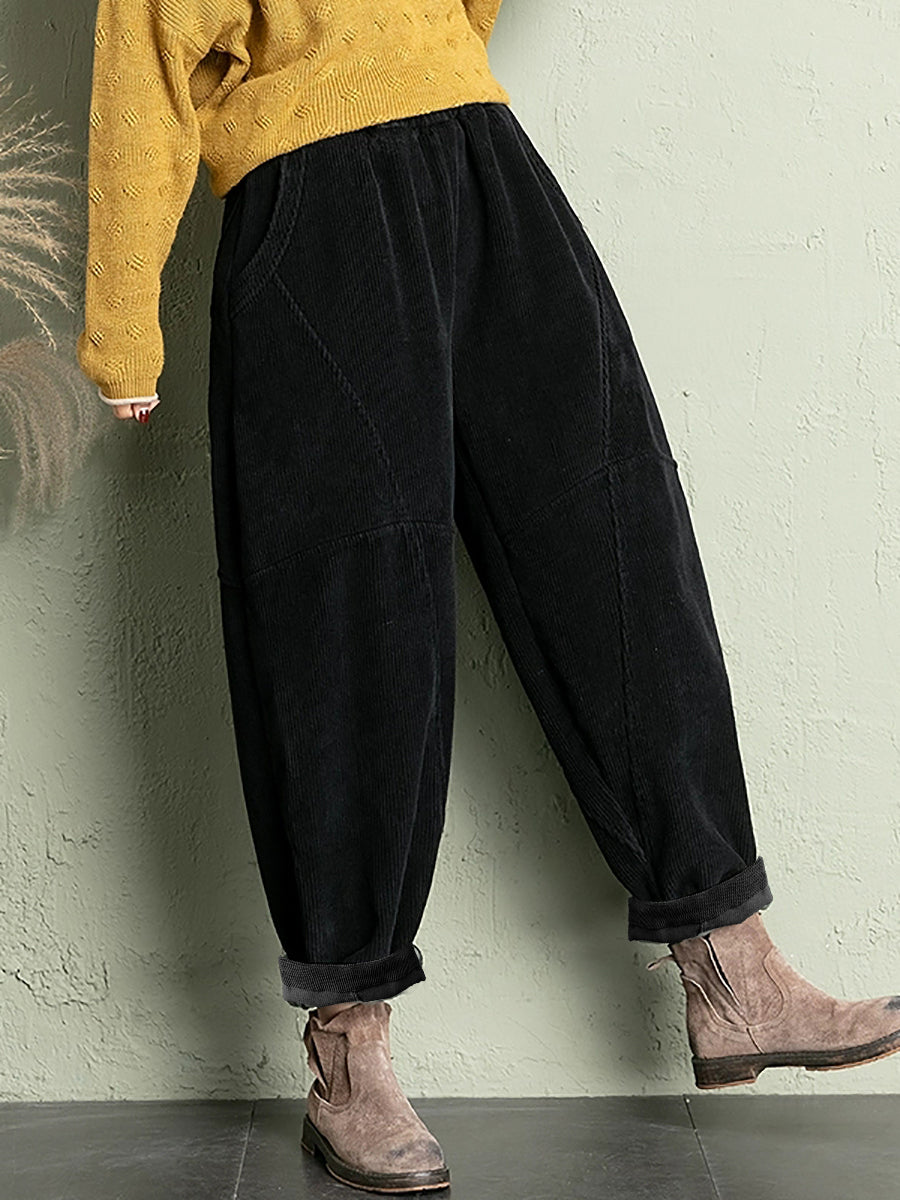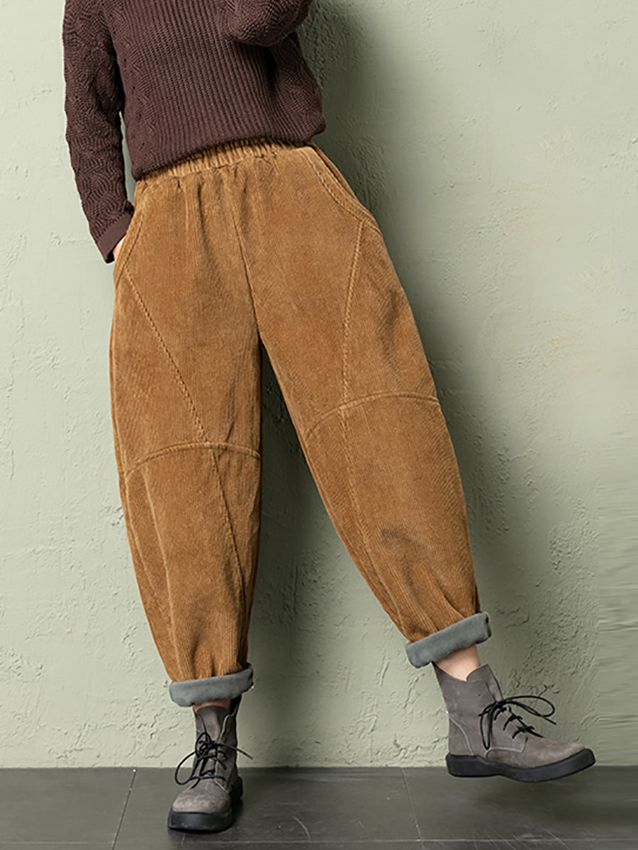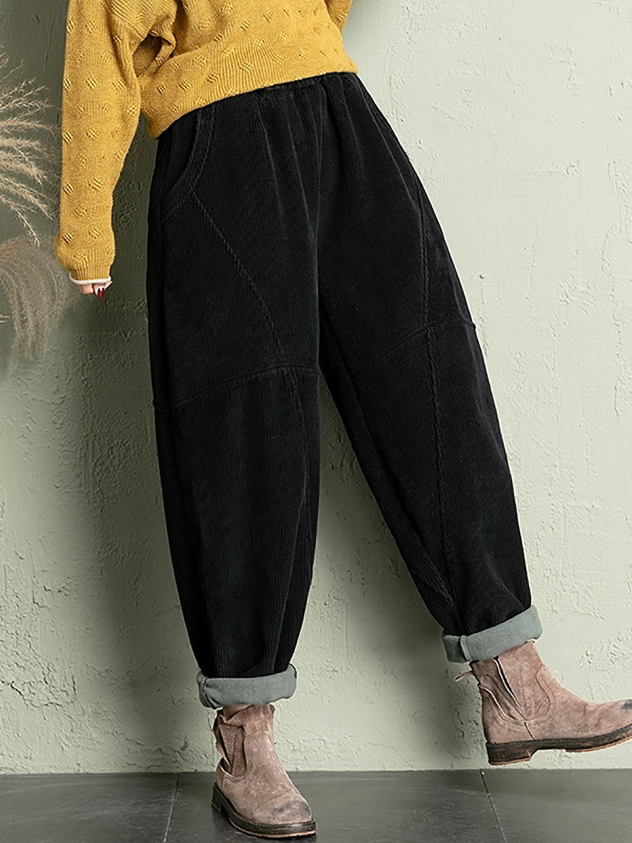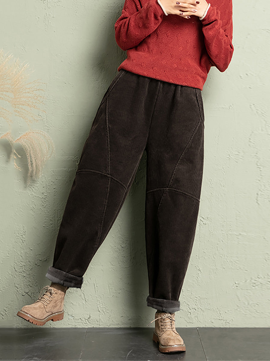 Pantalones harén de pana de color puro informales de invierno para mujer