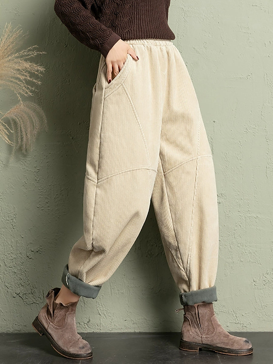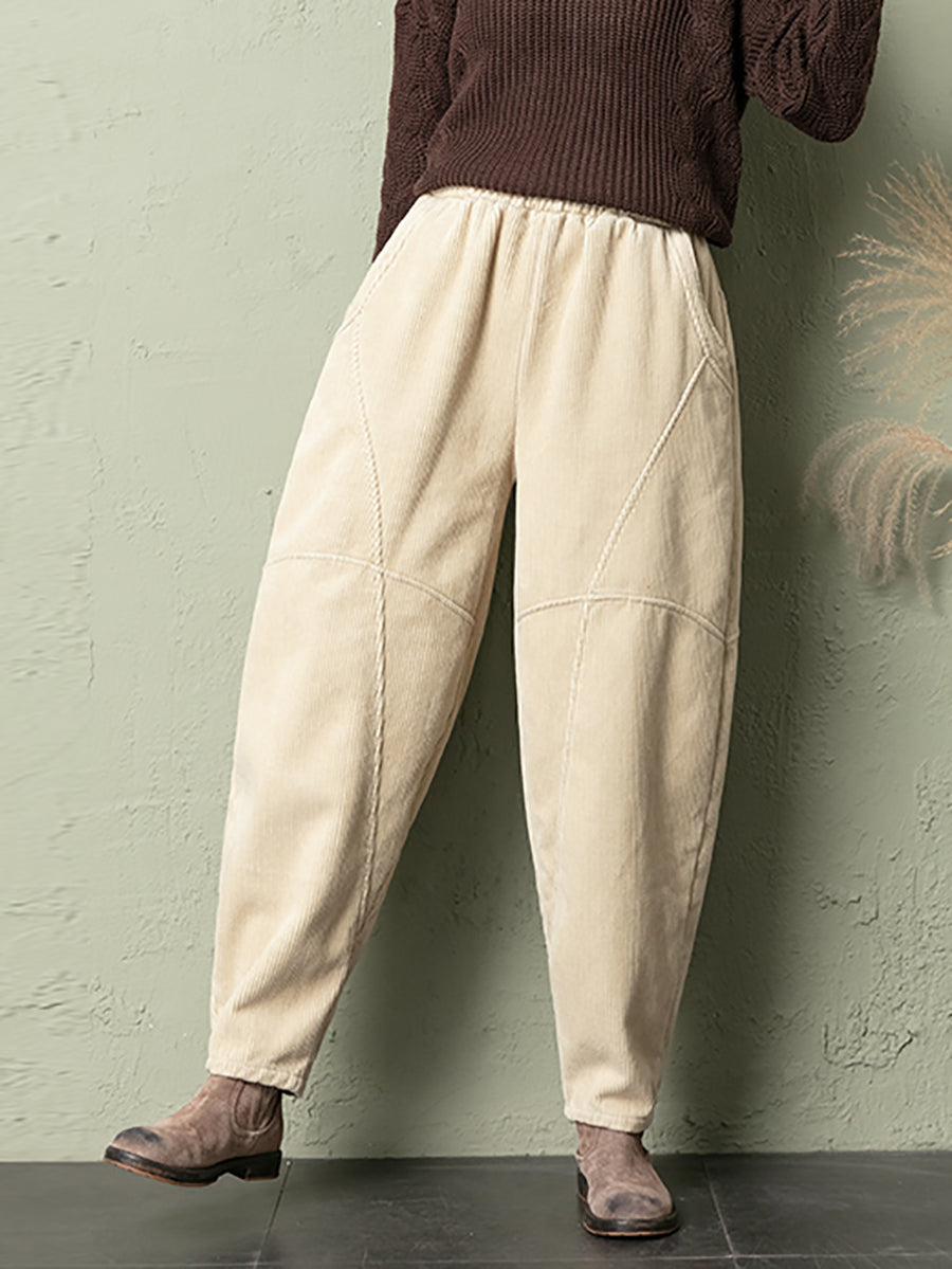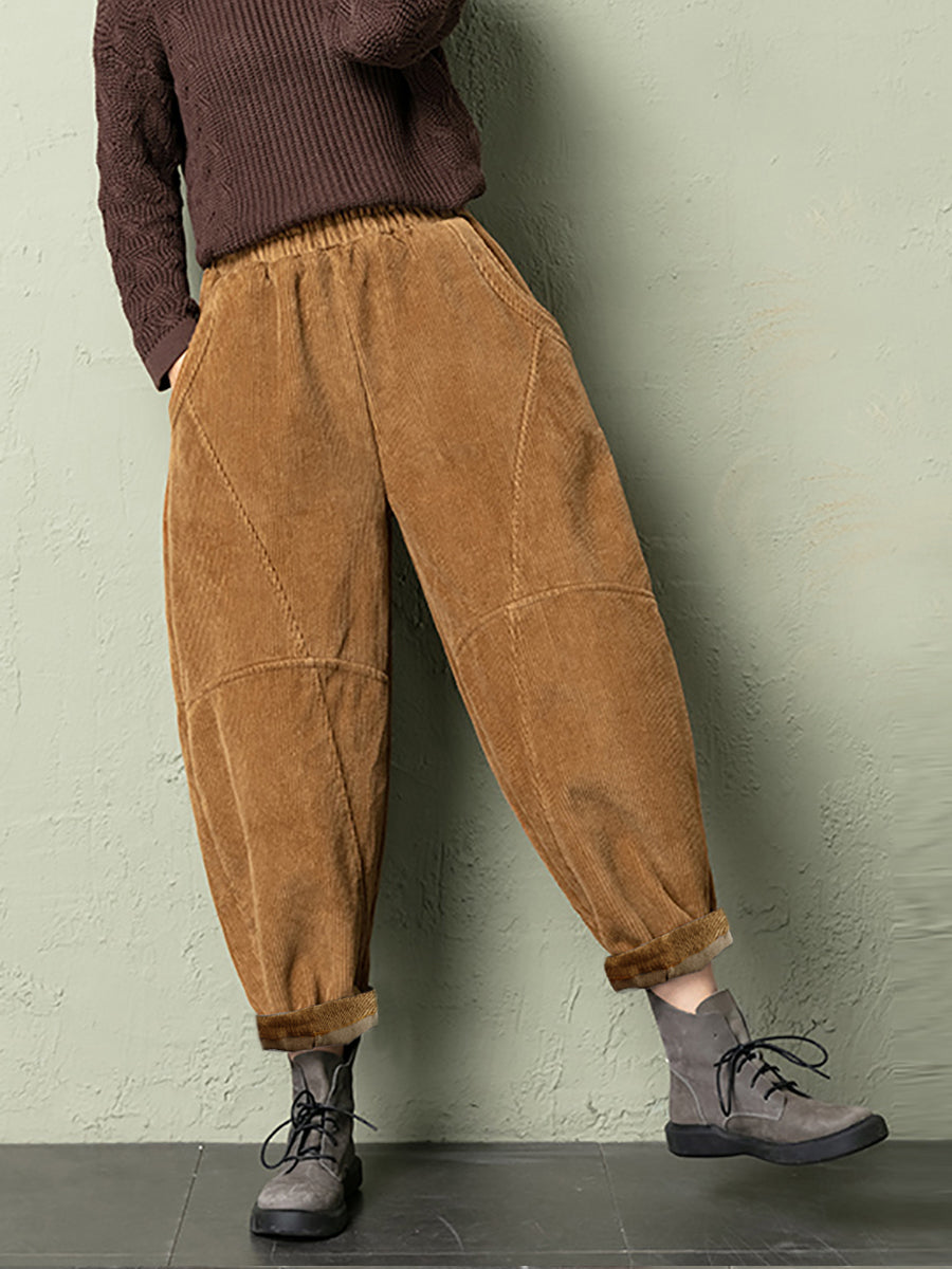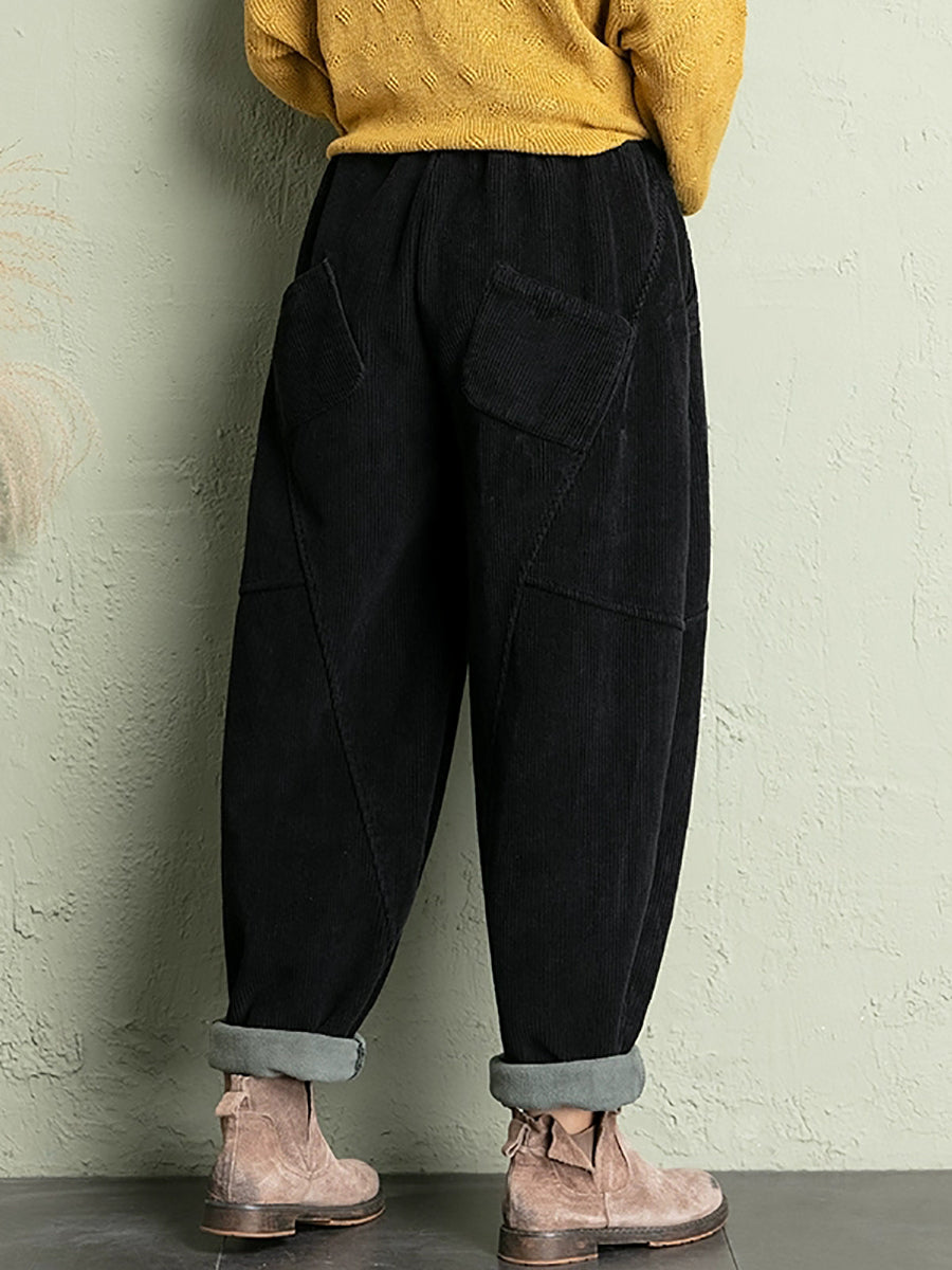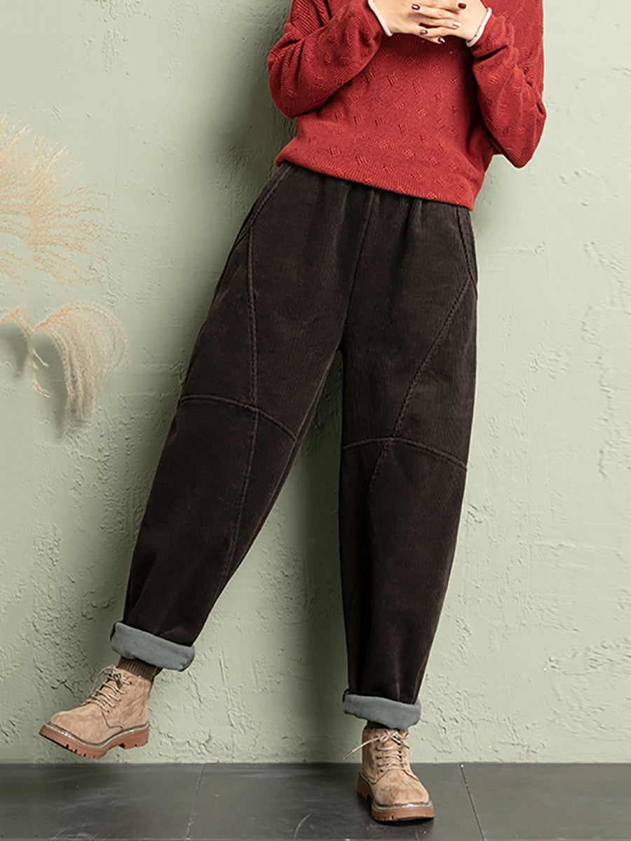 Pantalones harén de pana de color puro informales de invierno para mujer