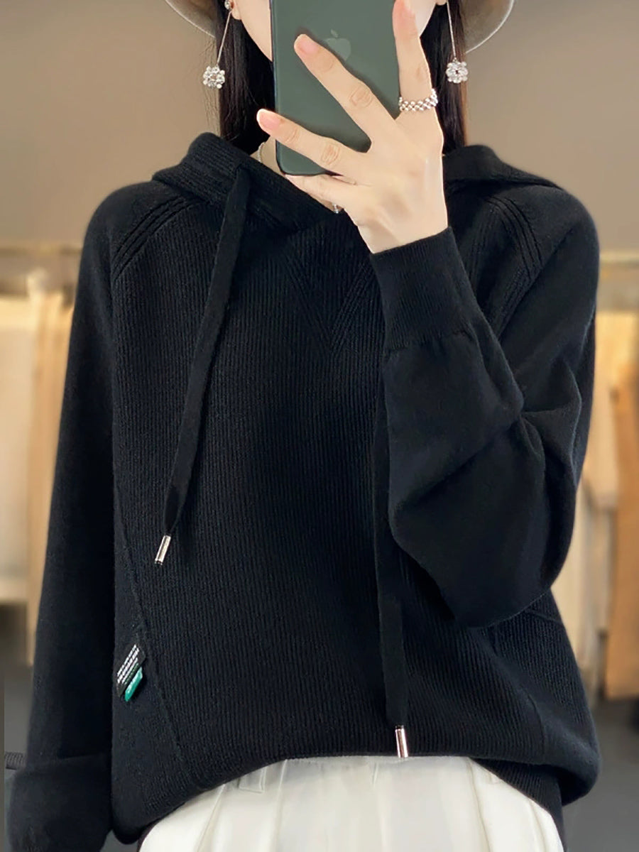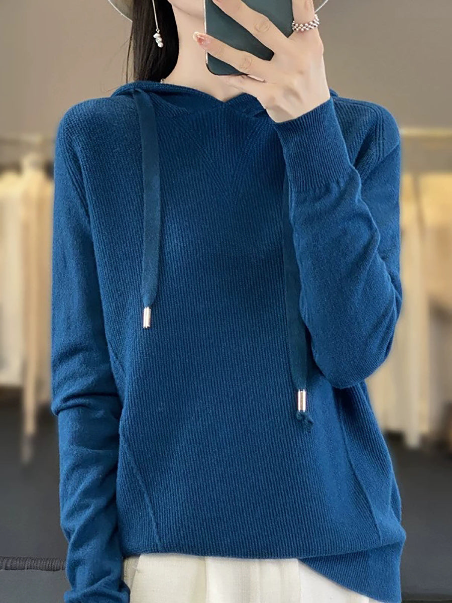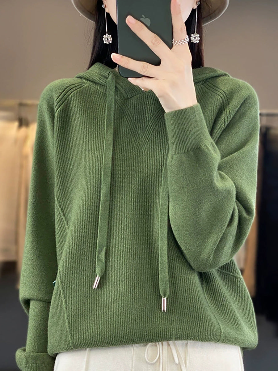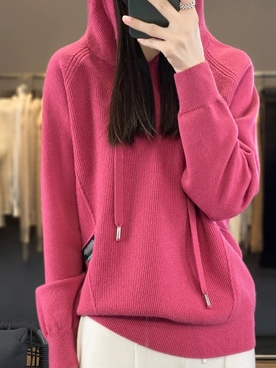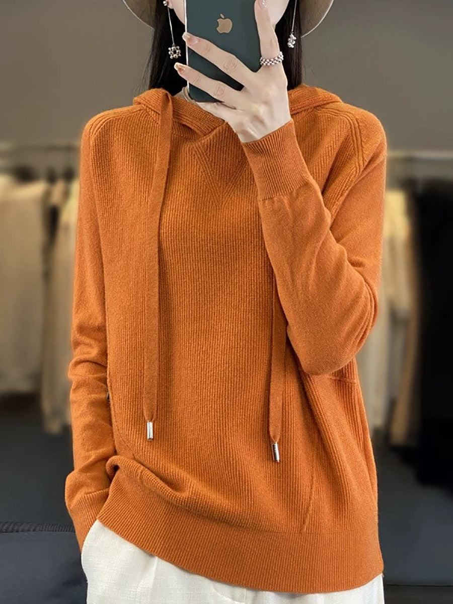 Sudadera con capucha de punto de color puro informal de invierno para mujer