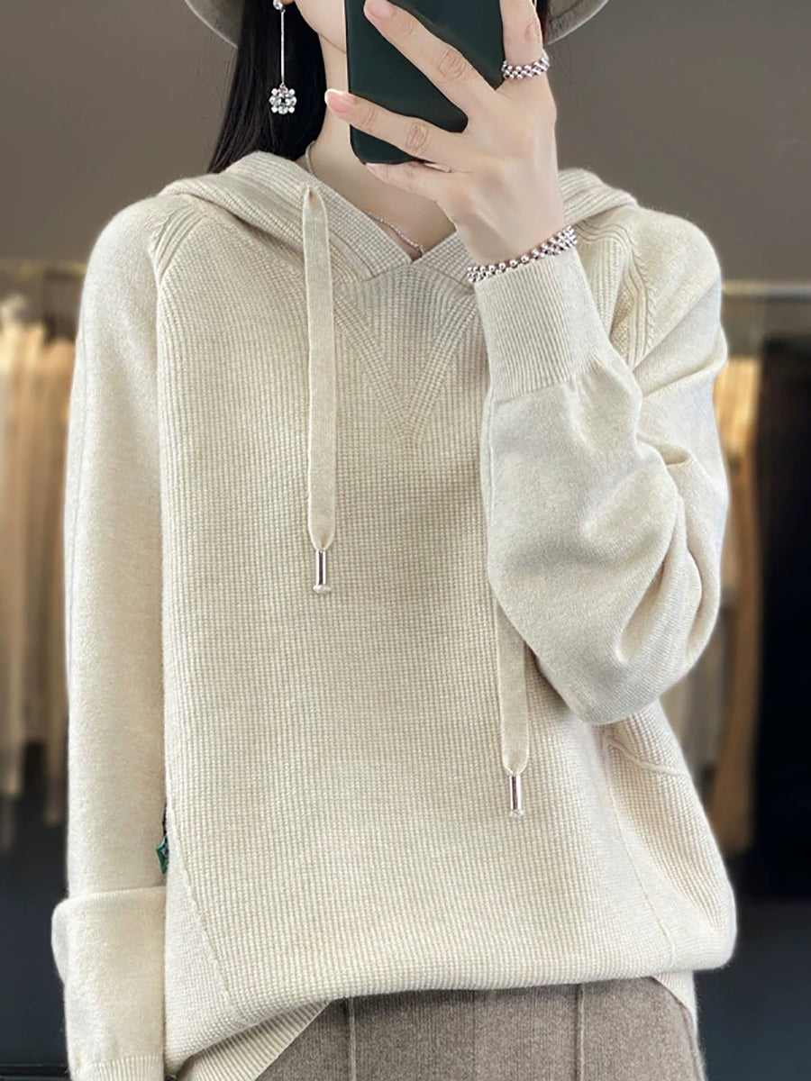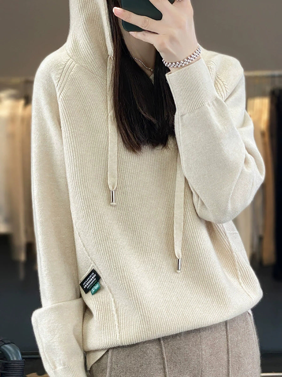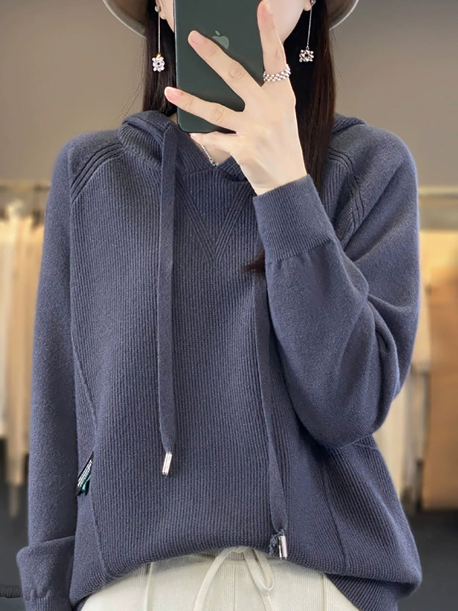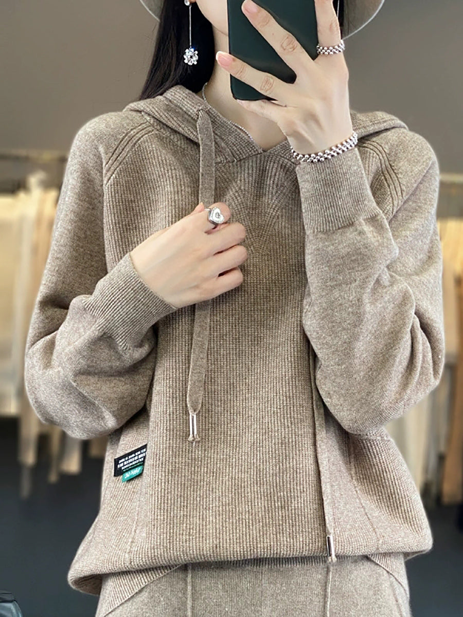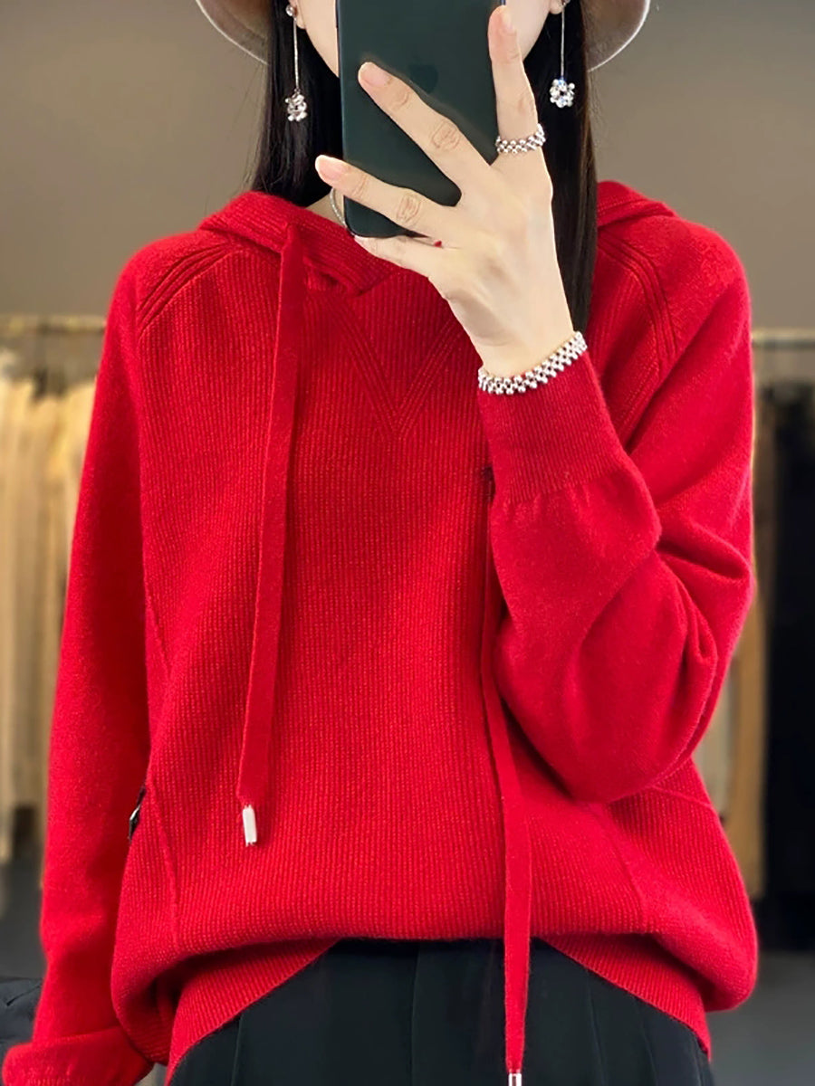Sudadera con capucha de punto de color puro informal de invierno para mujer