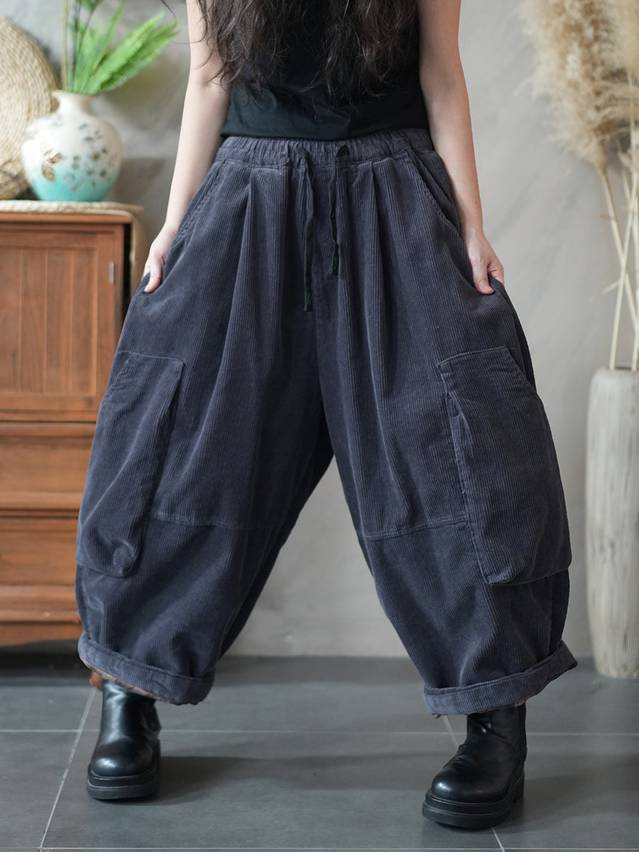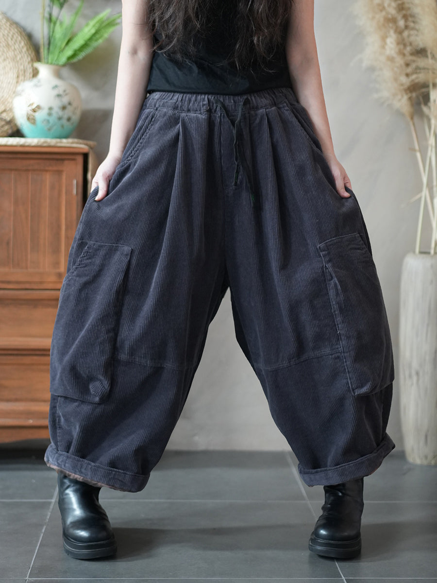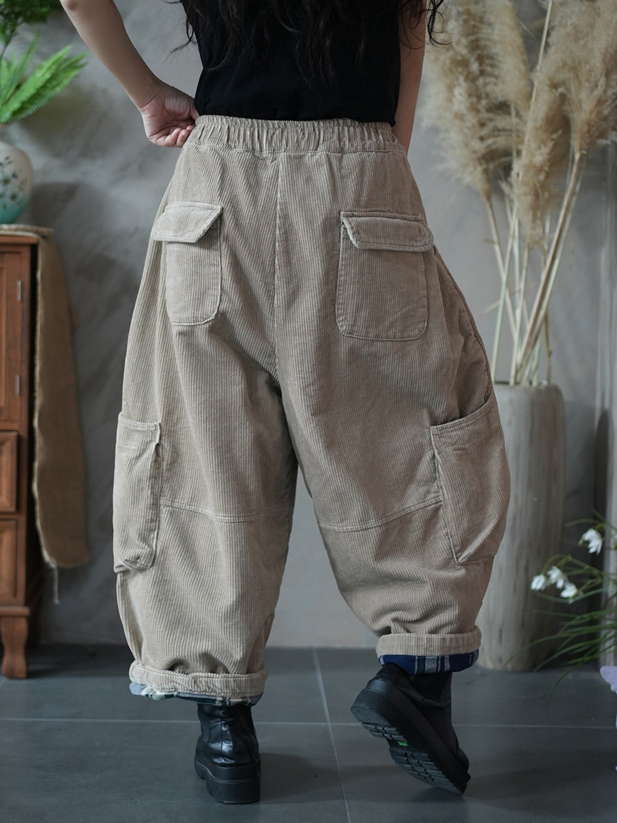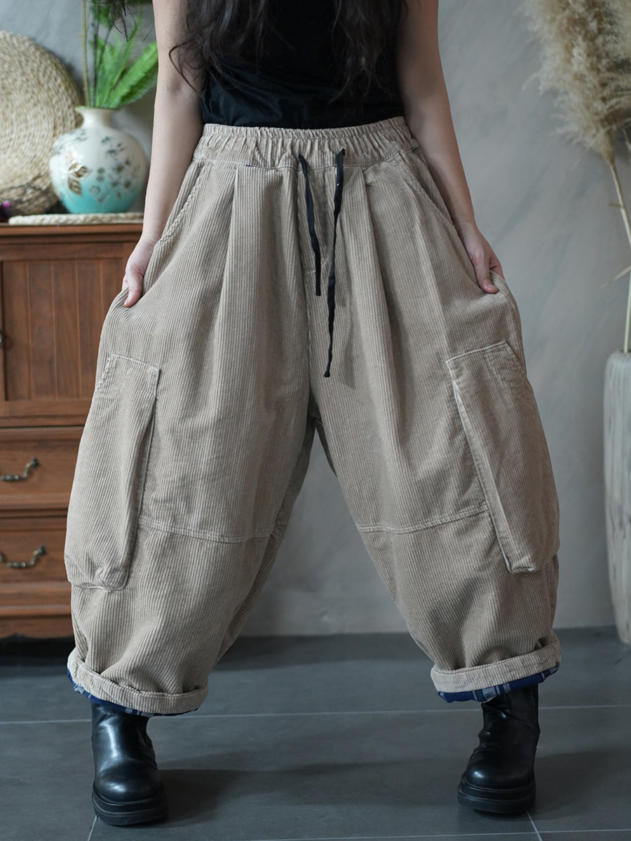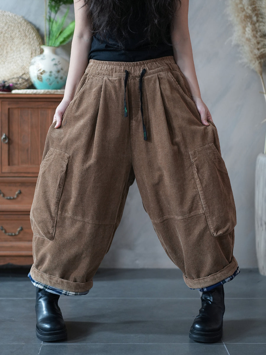 Pantalones harén acolchados de pana de color puro de invierno para mujer