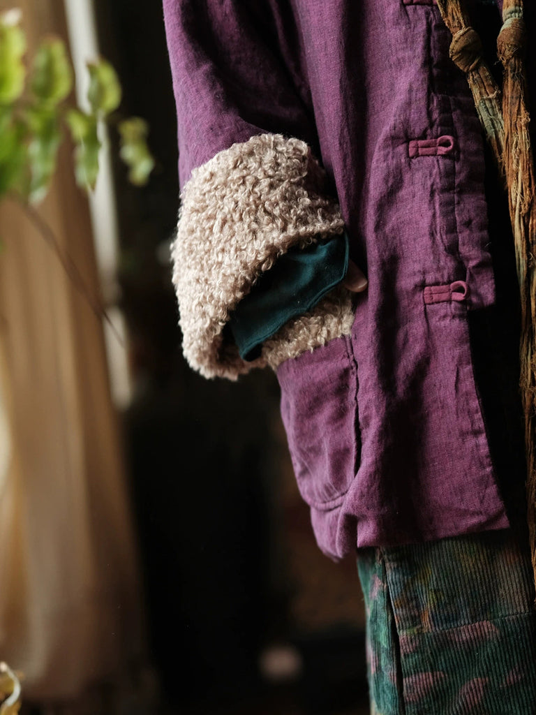Abrigo de invierno para mujer, de color liso, con cuello redondo y forro polar de algodón.