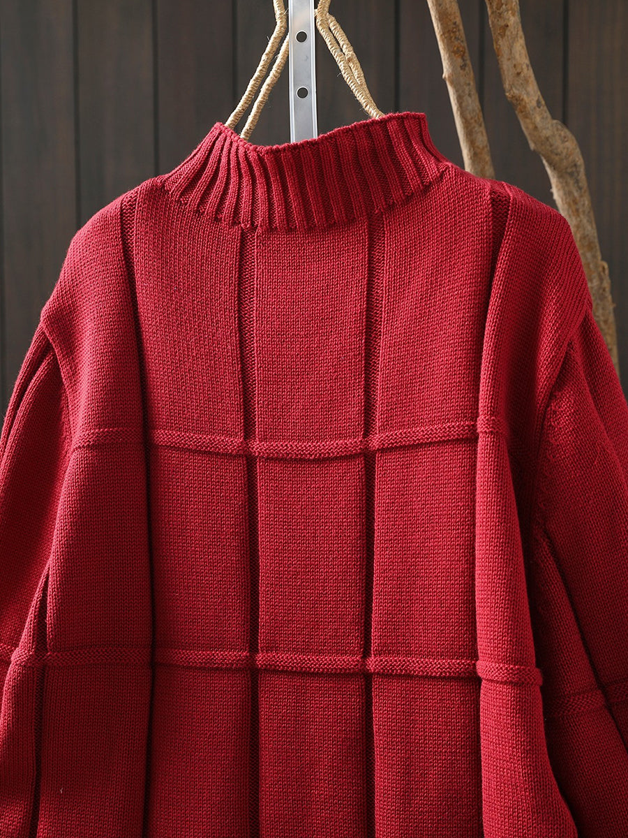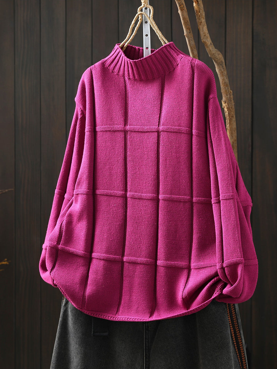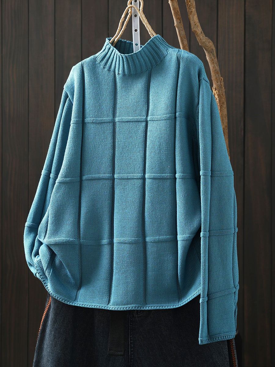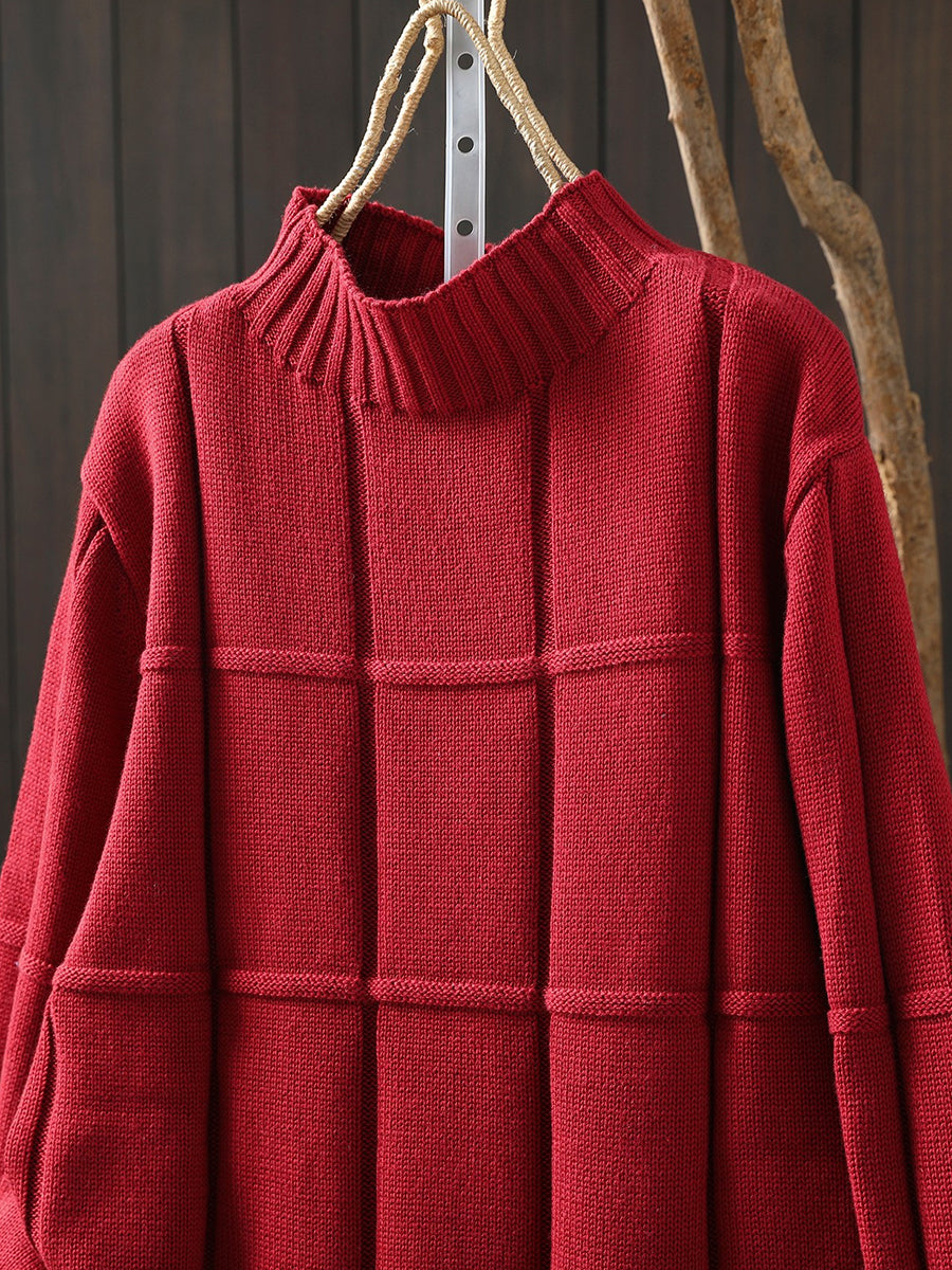 Suéter de cuello alto medio de punto de color puro de invierno para mujer
