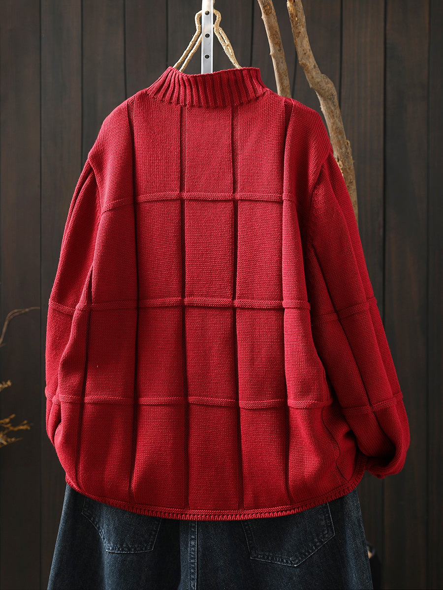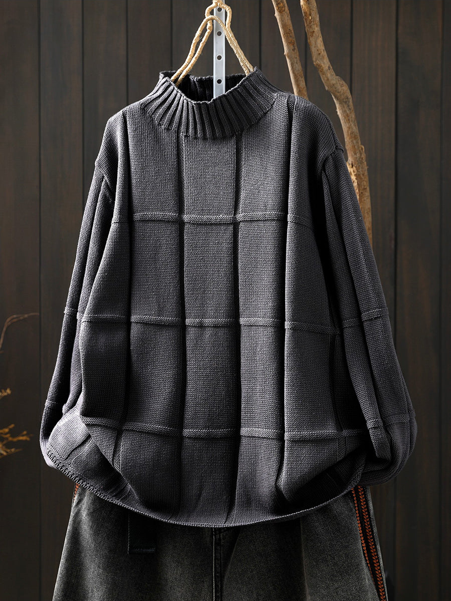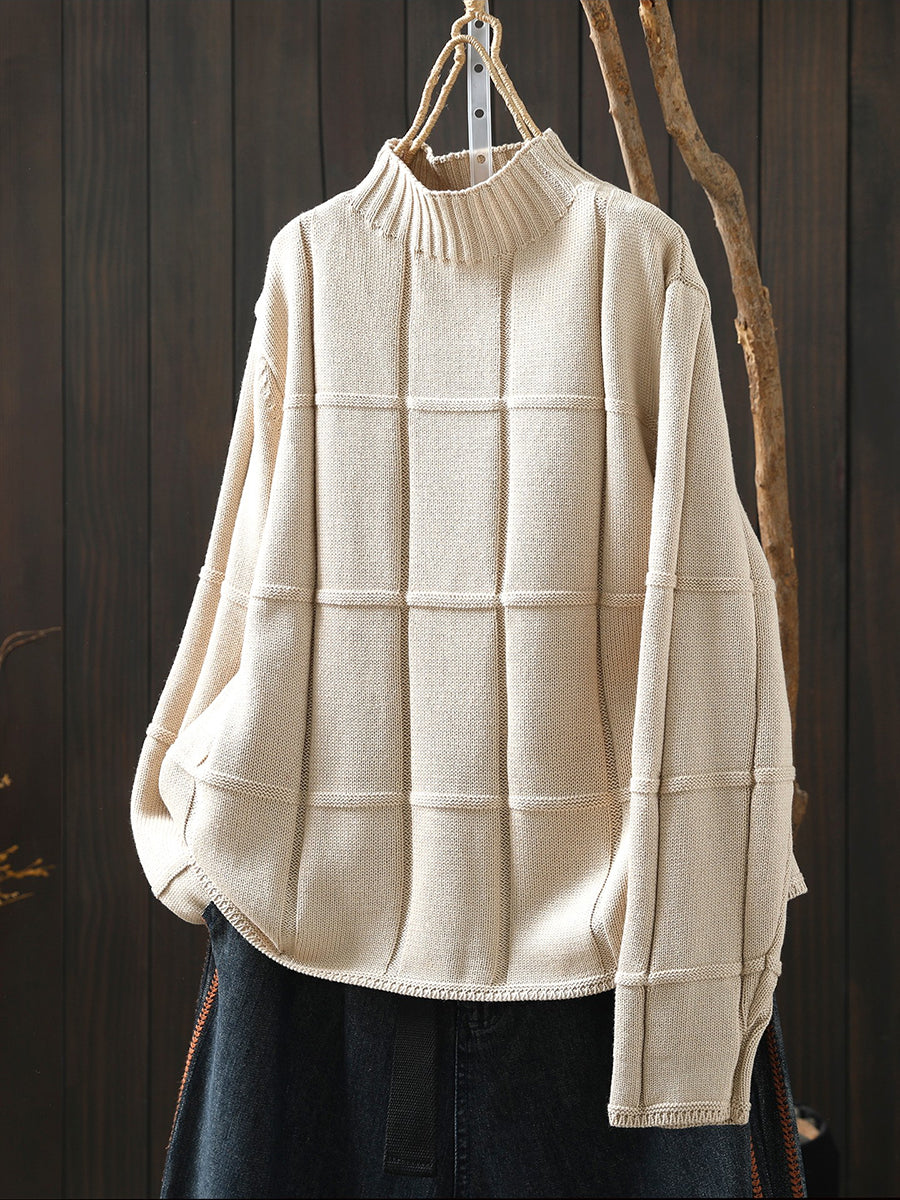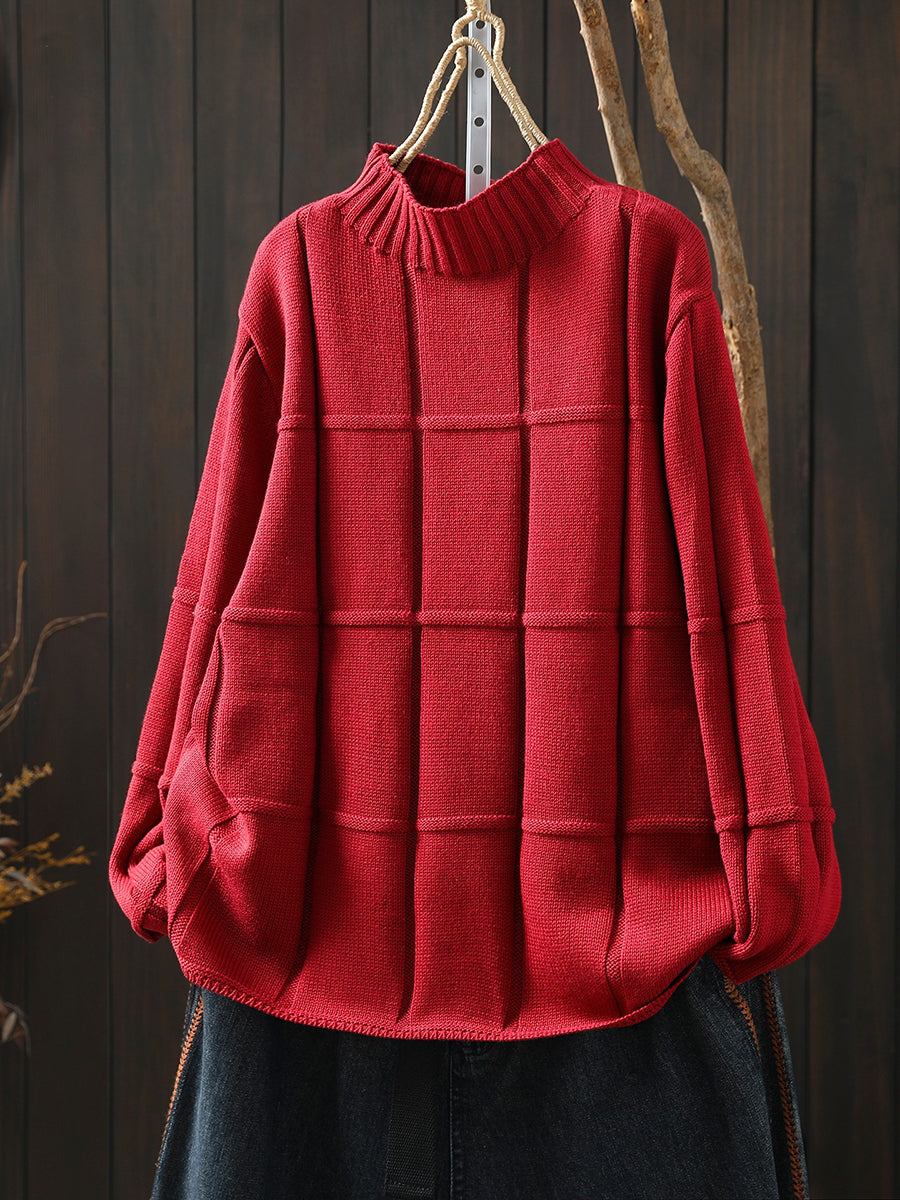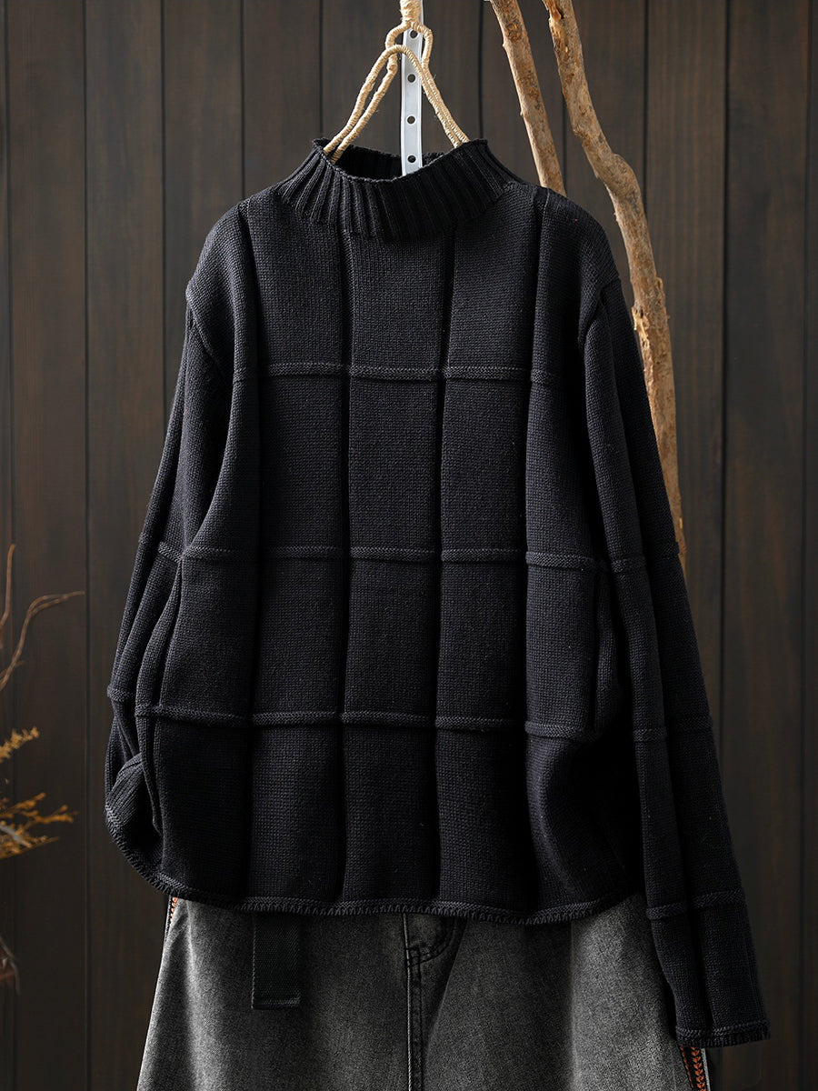 Suéter de cuello alto medio de punto de color puro de invierno para mujer