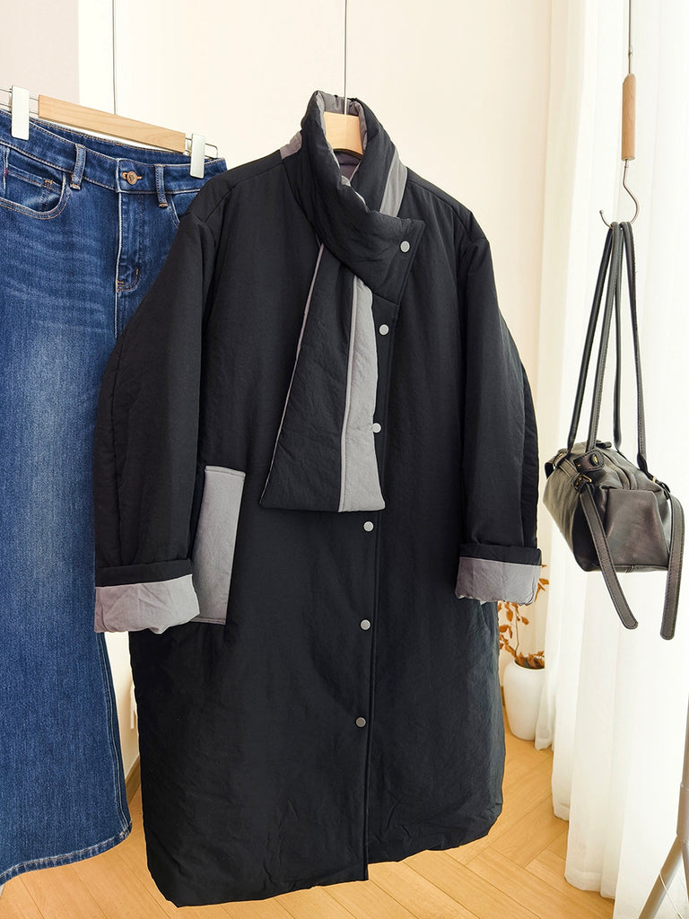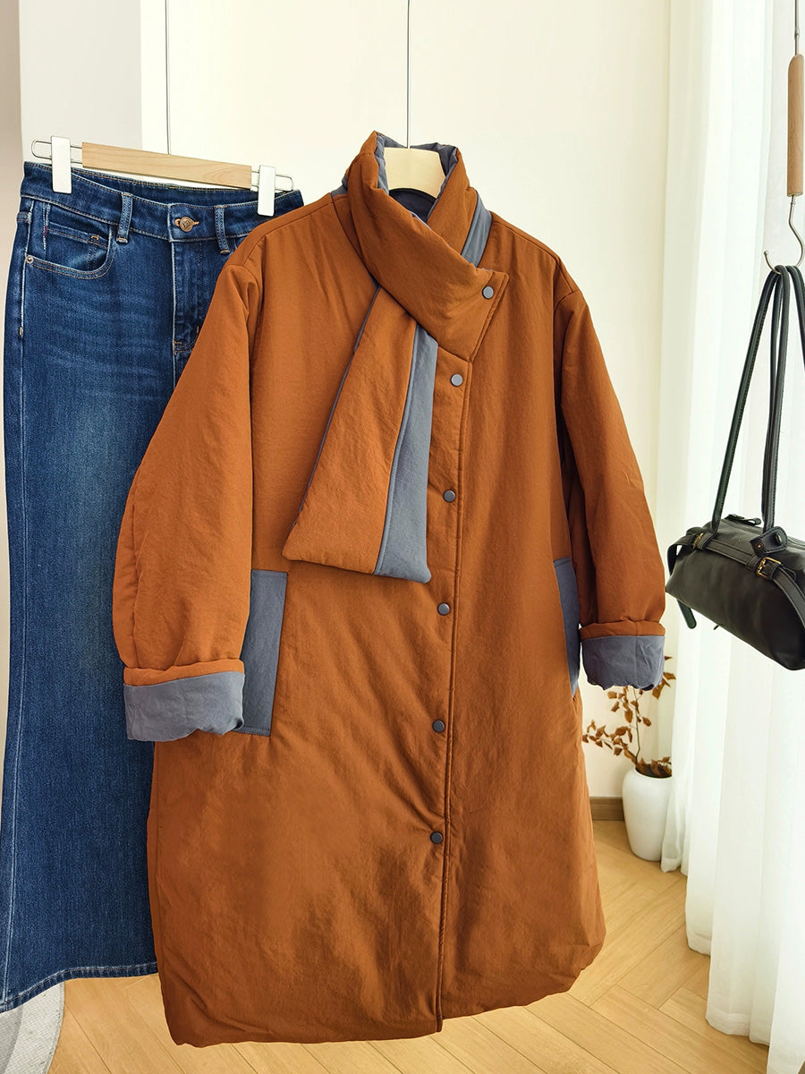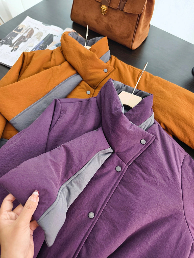 Abrigo acolchado con cuello vuelto de color puro de invierno para mujer