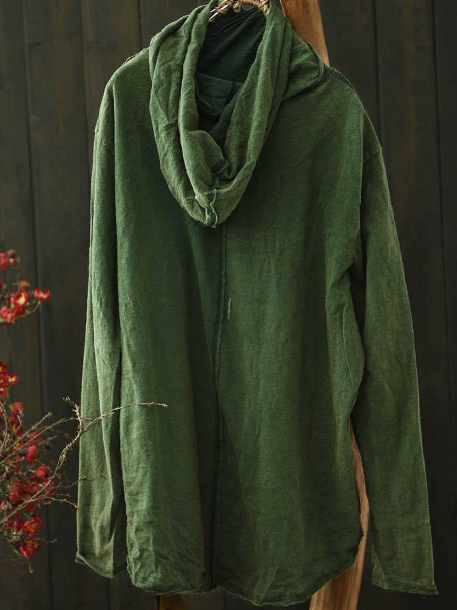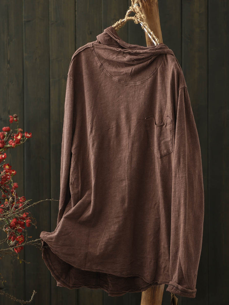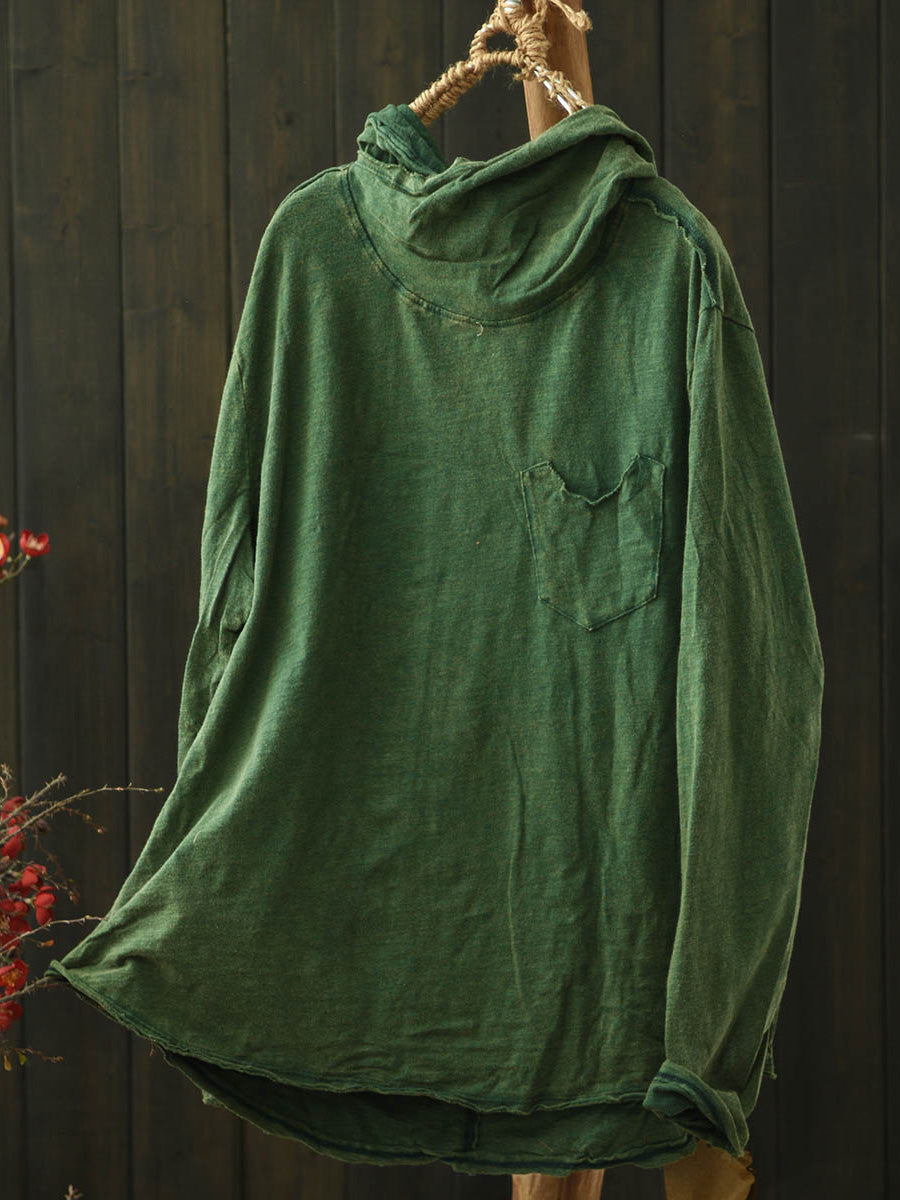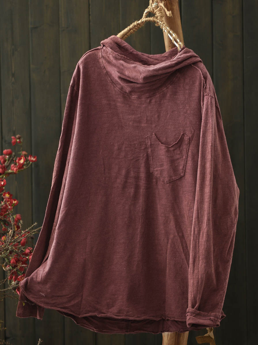 Blusa con capucha de algodón de color puro retro de invierno para mujer