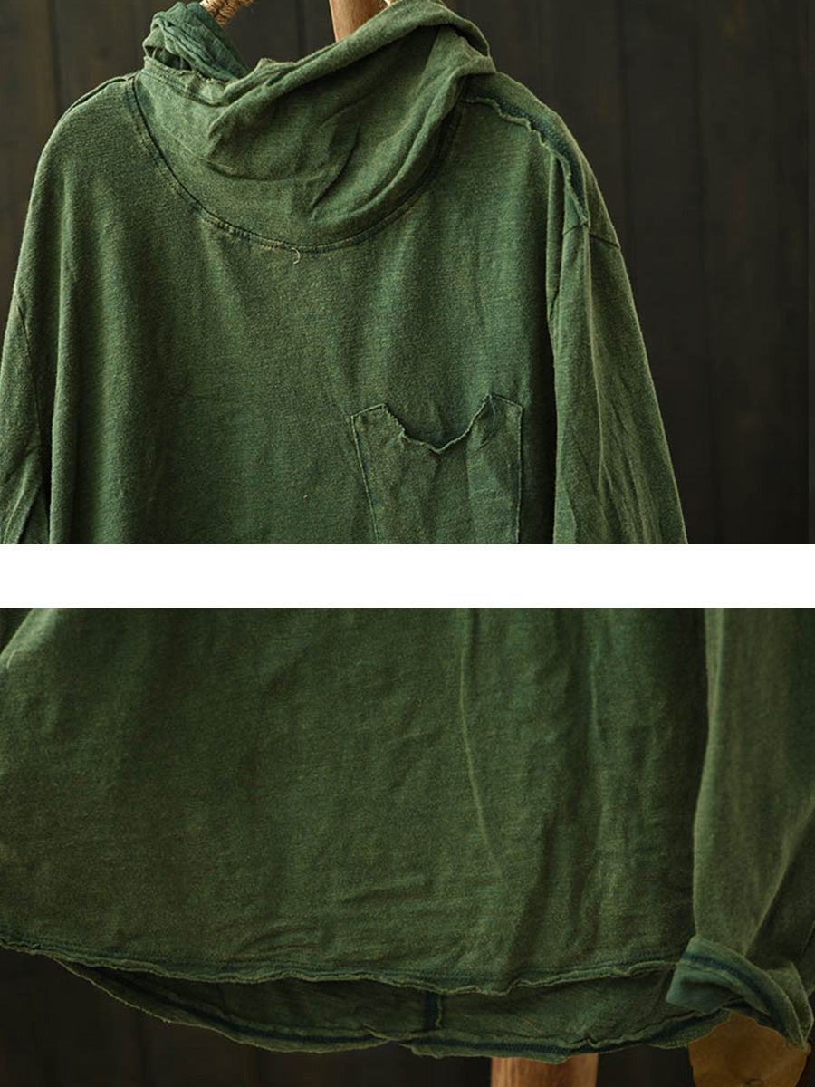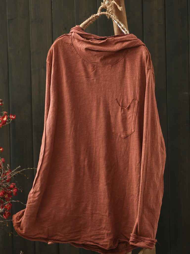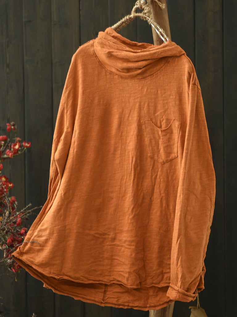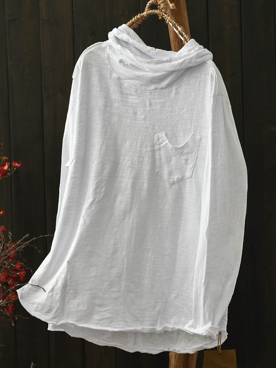 Blusa con capucha de algodón de color puro retro de invierno para mujer