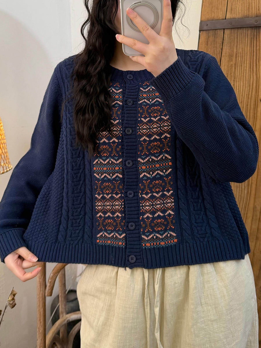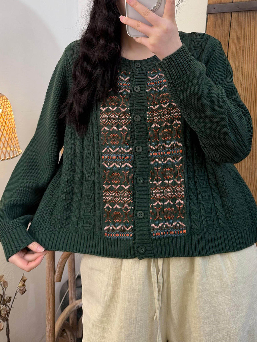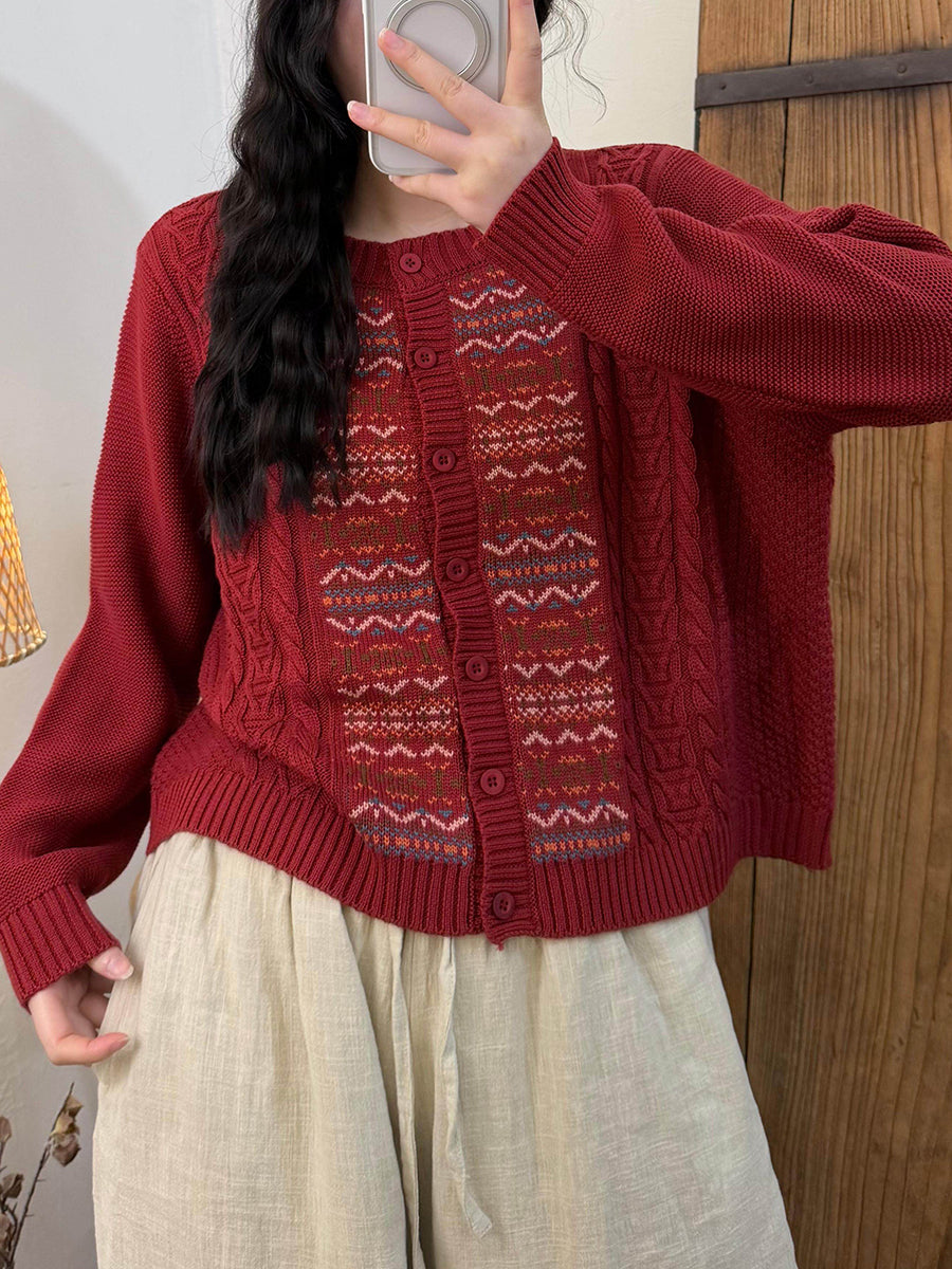 Suéter de punto vintage de invierno para mujer con cuello redondo