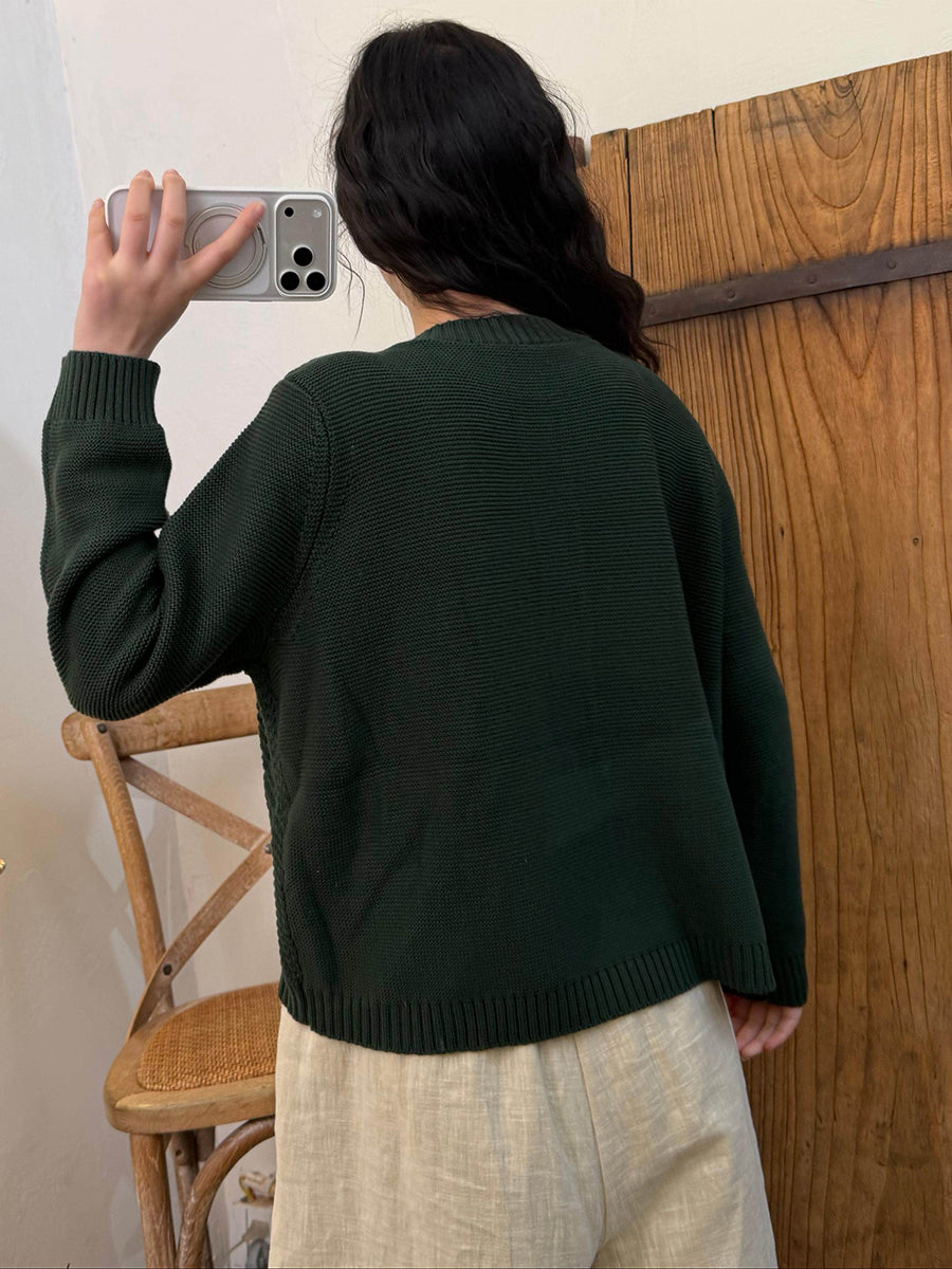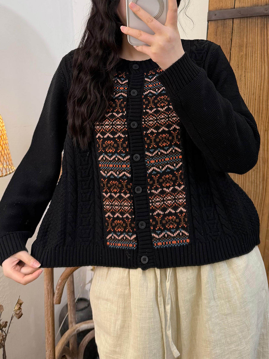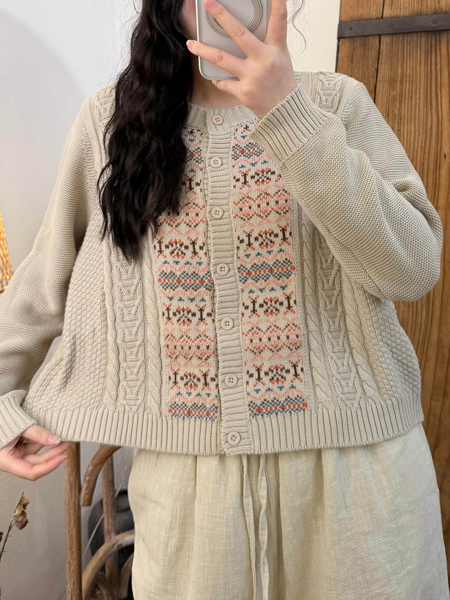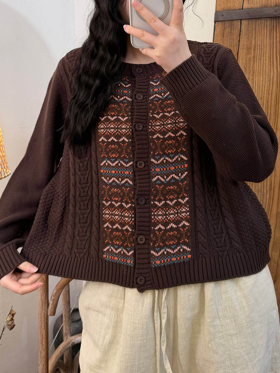 Suéter de punto vintage de invierno para mujer con cuello redondo